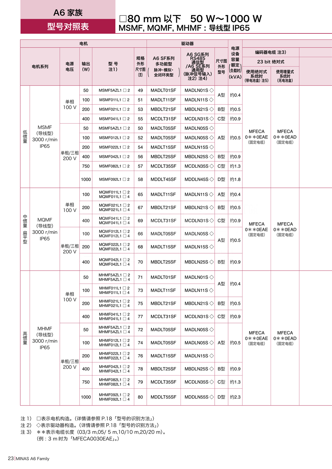 松下 A6系列 伺服配件套装