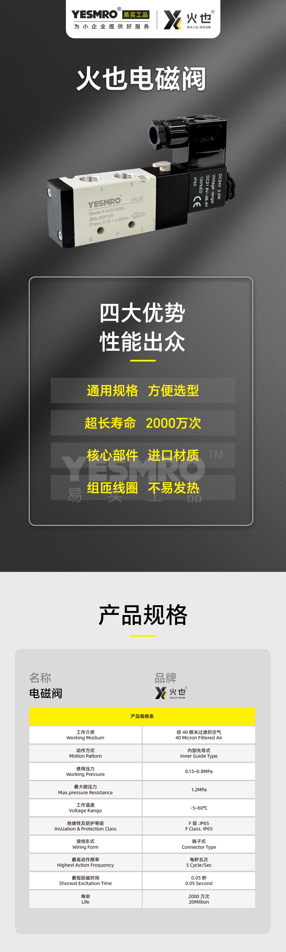 扎实:进口材质先导头与弹簧,保证2000万次寿命 易用:附设手动测试按钮,方便安装调试 安全:3W低功率足匝线圈,1.2MPa最大耐压力