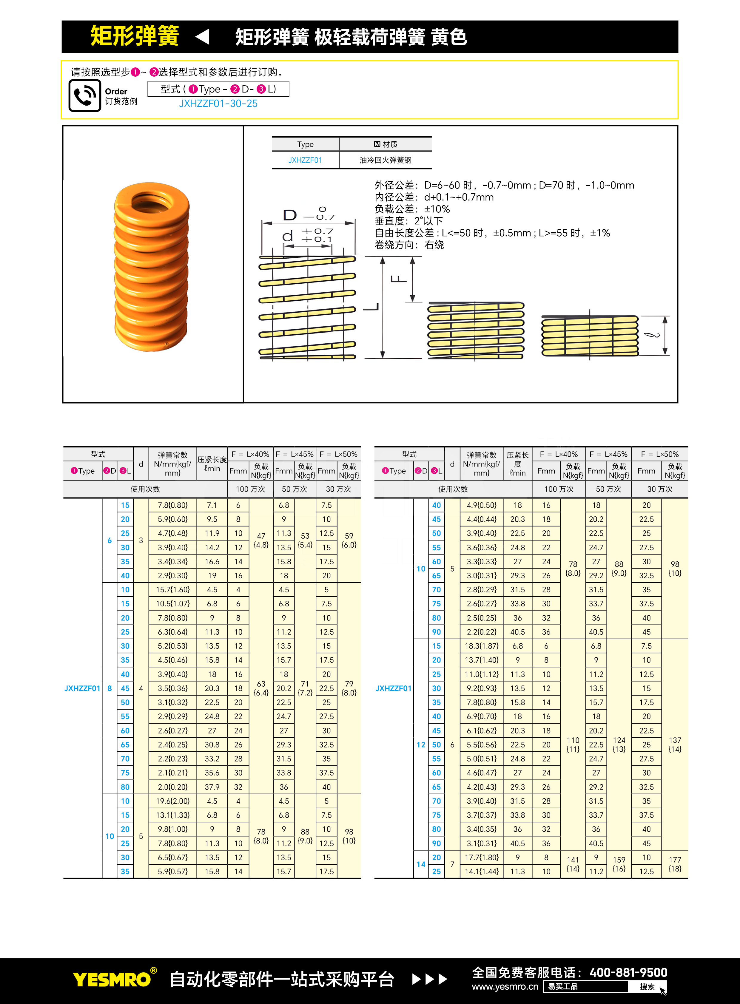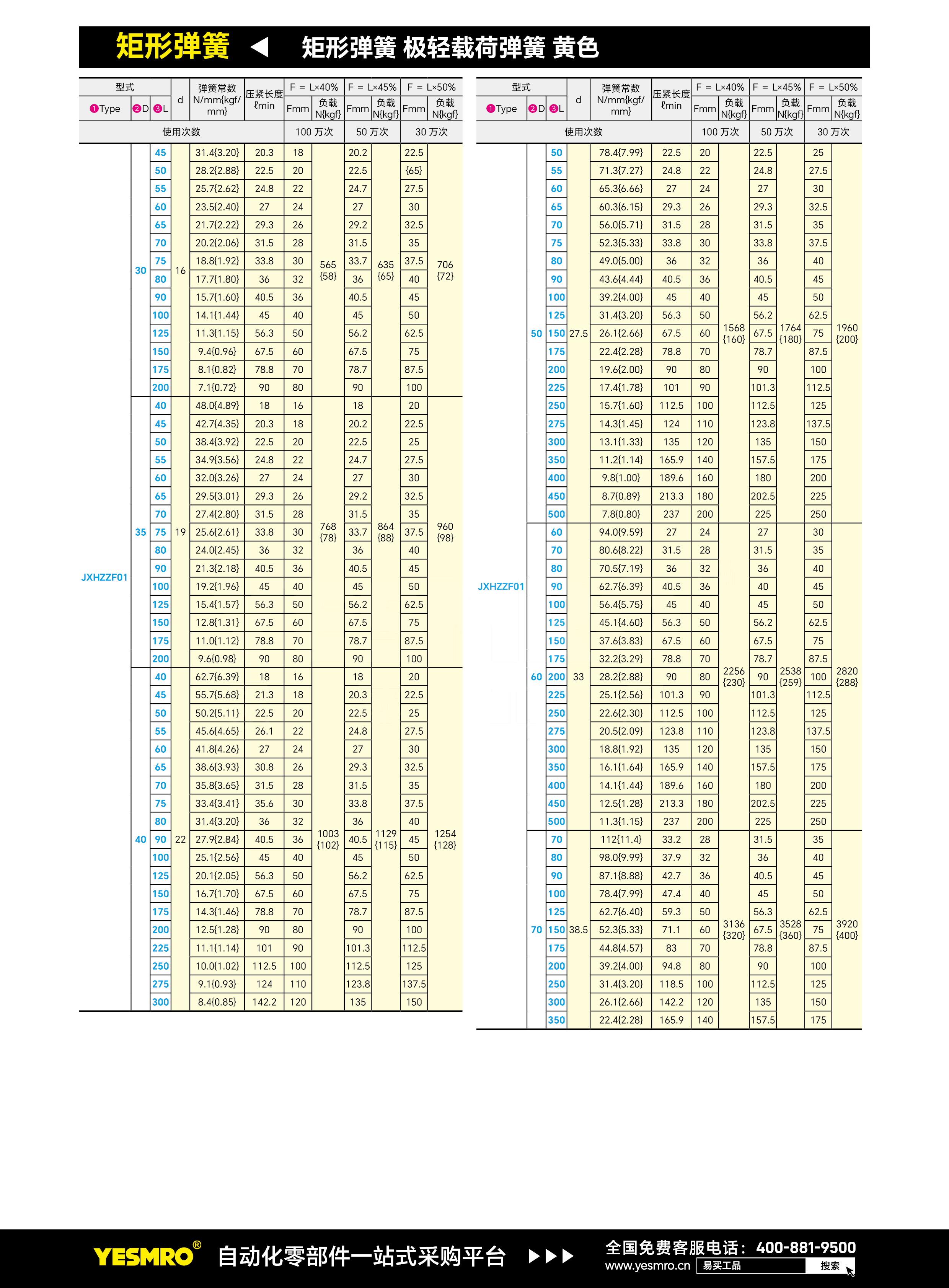 矩形弹簧 极轻载荷弹簧 黄色