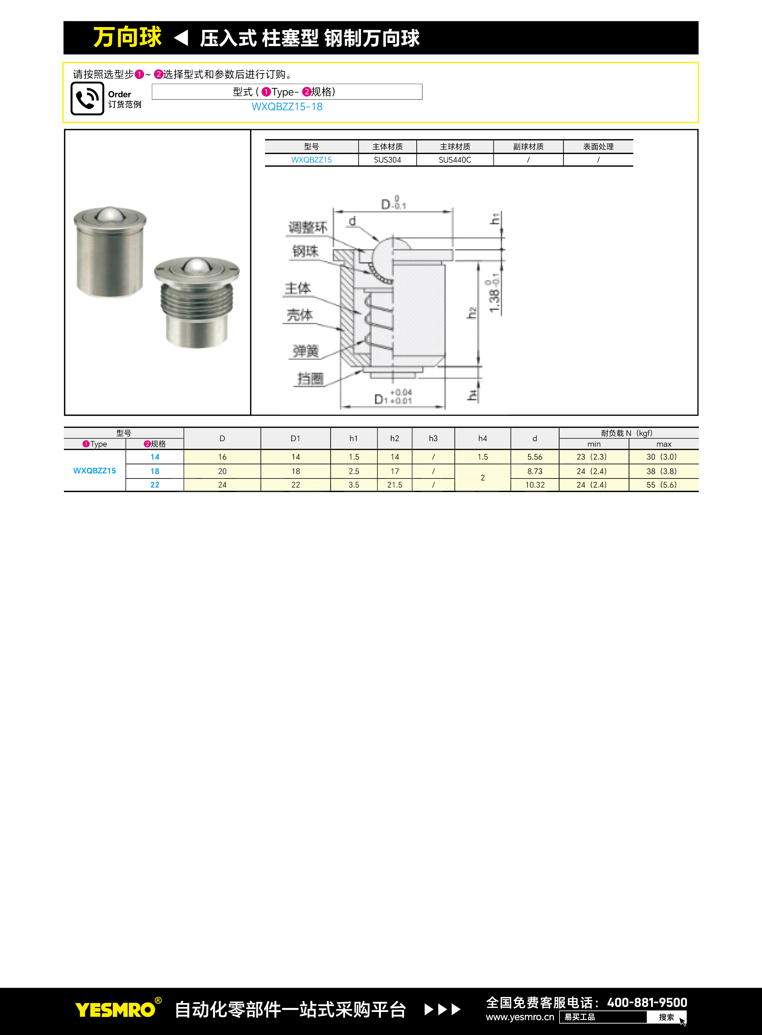 压入式 柱塞型 钢制万向球