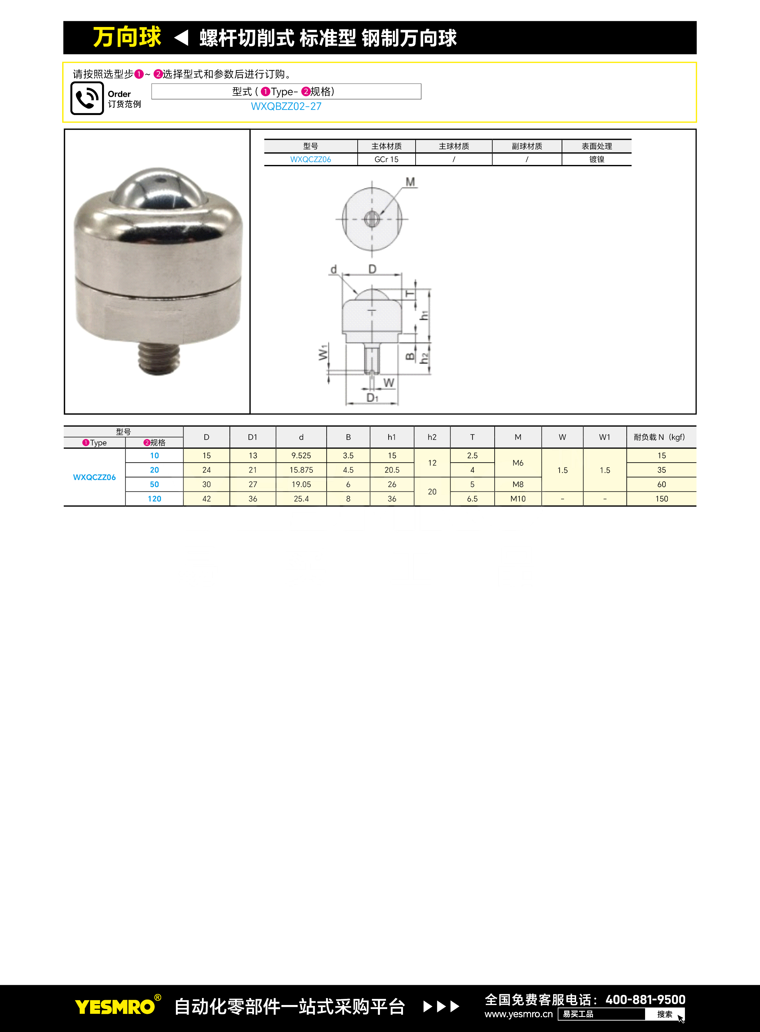 螺杆切削式 标准型 钢制万向球