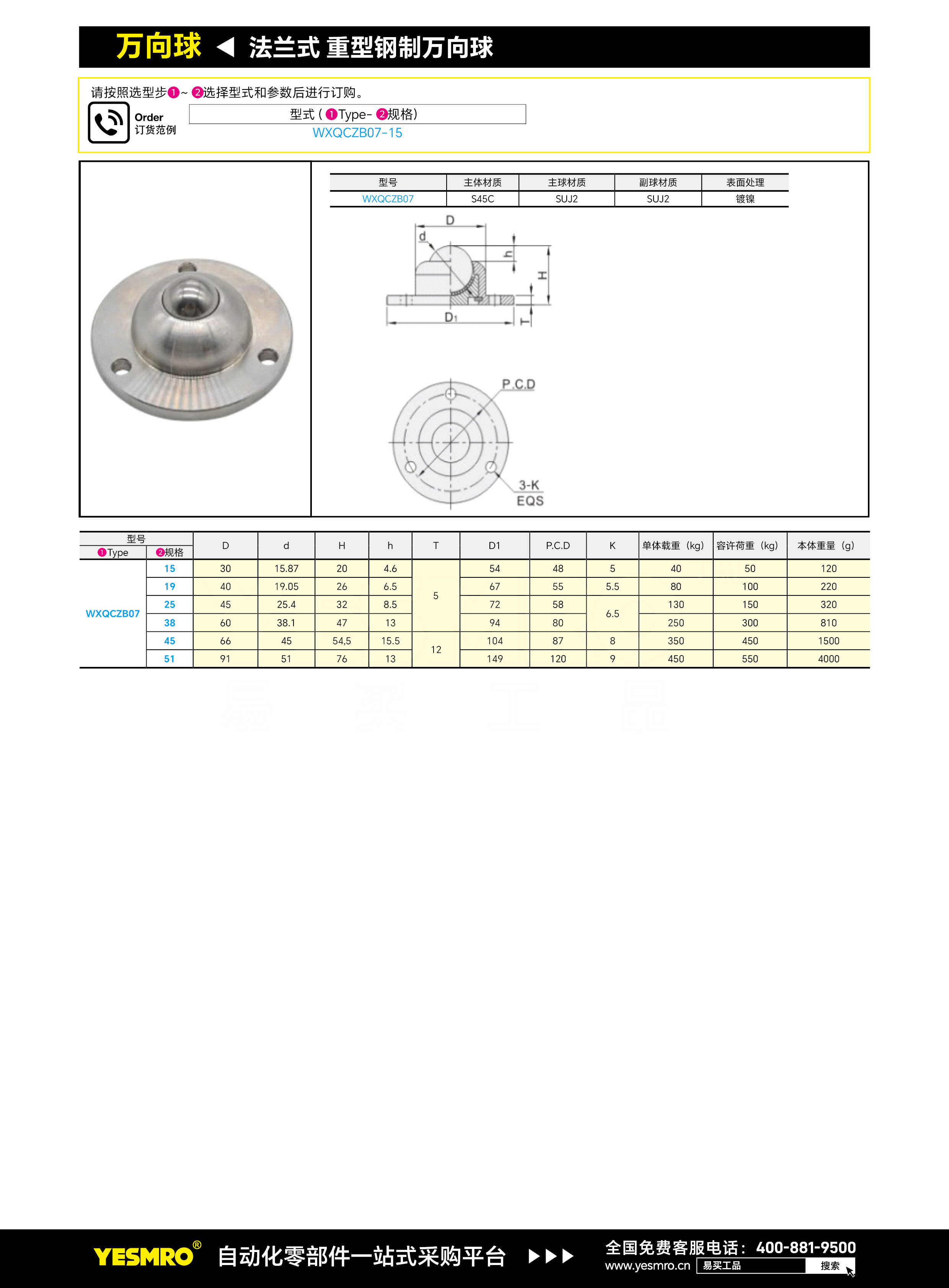 法兰式 重型钢制万向球