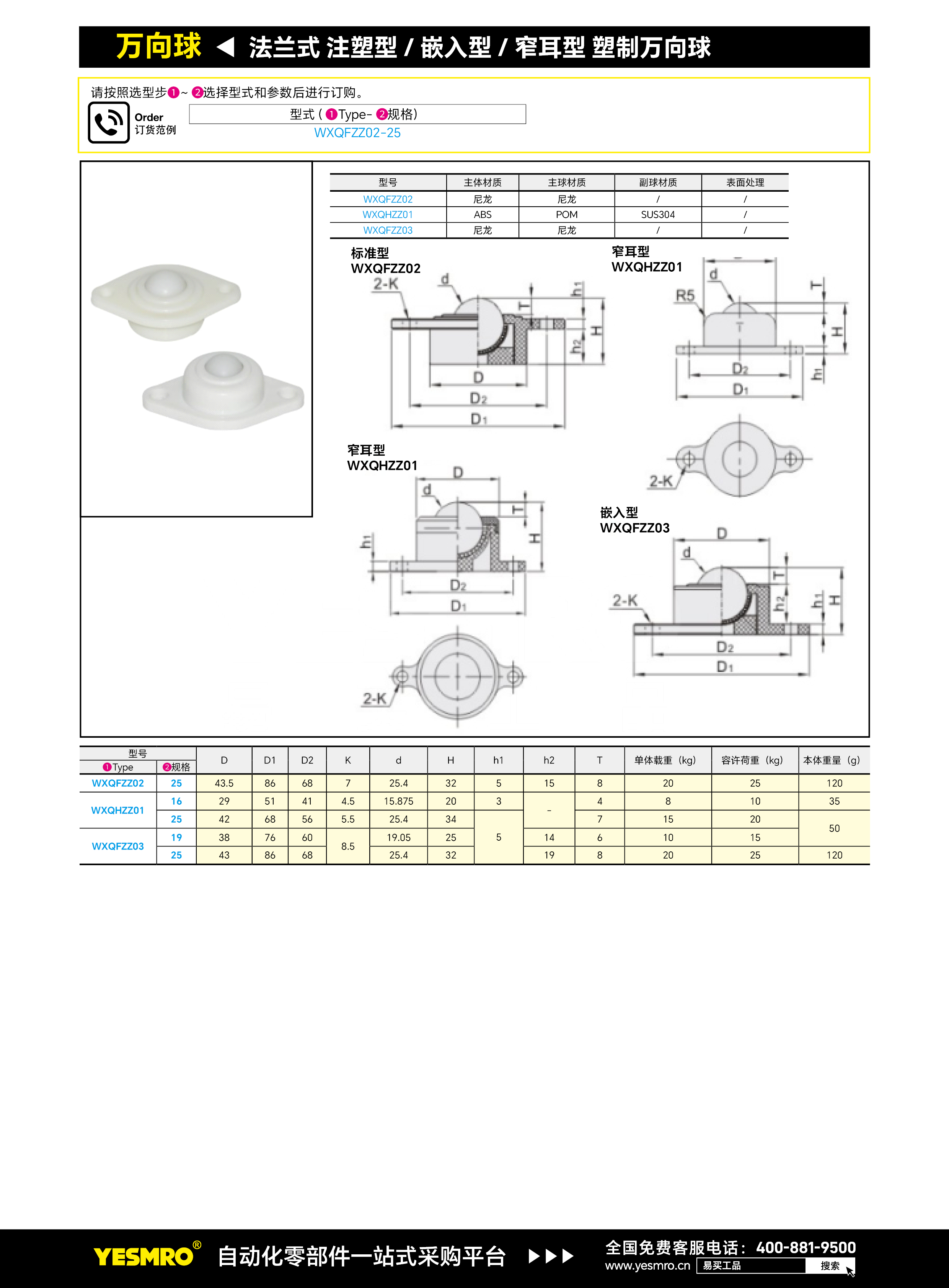 法兰式 嵌入型 塑制万向球