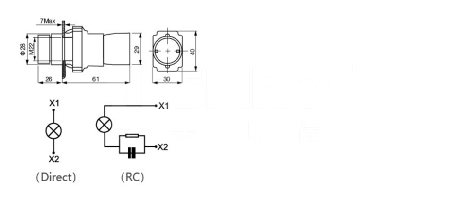 金属系列带灯触点基座