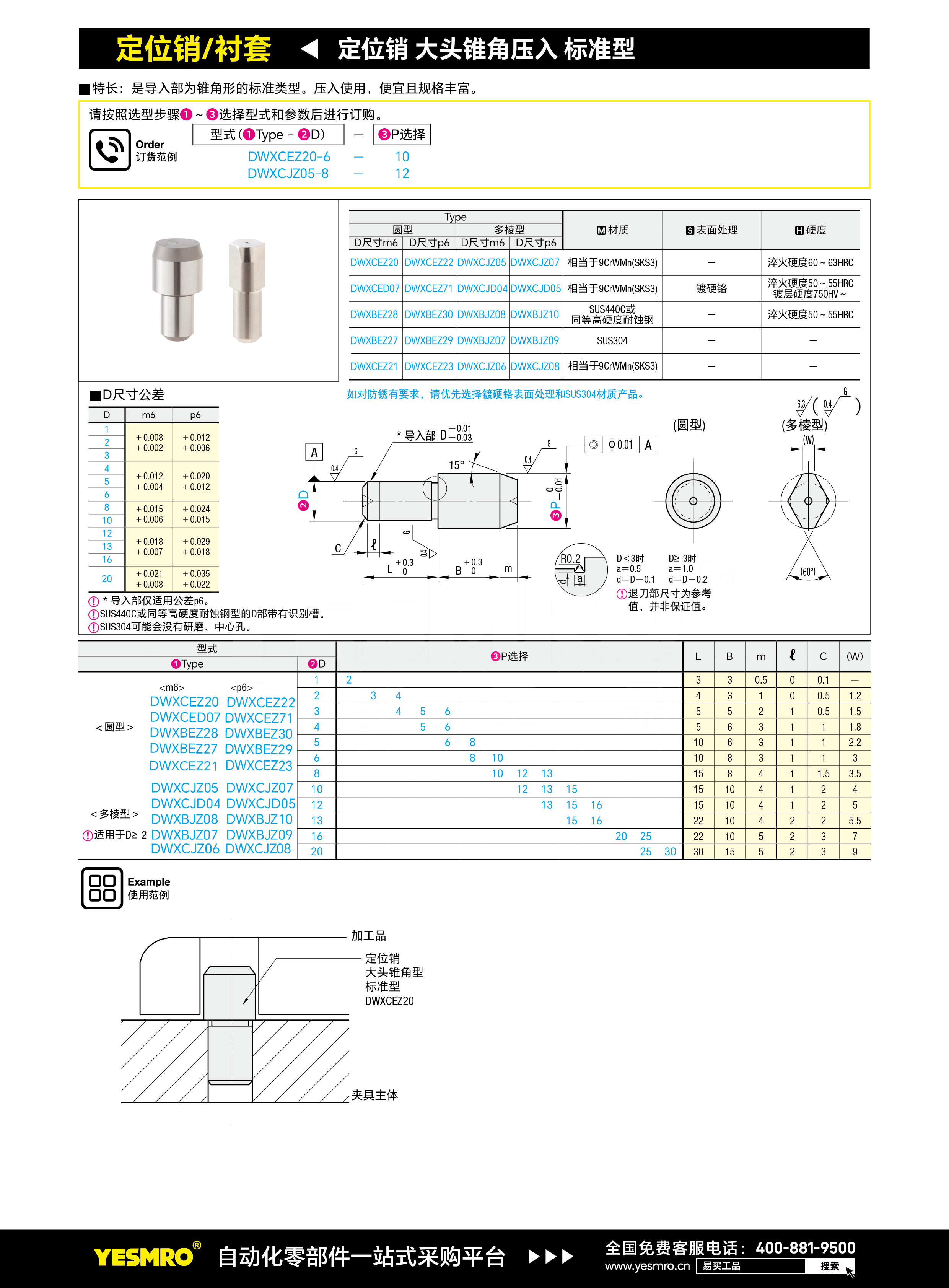 定位销 大头锥角压入 标准型