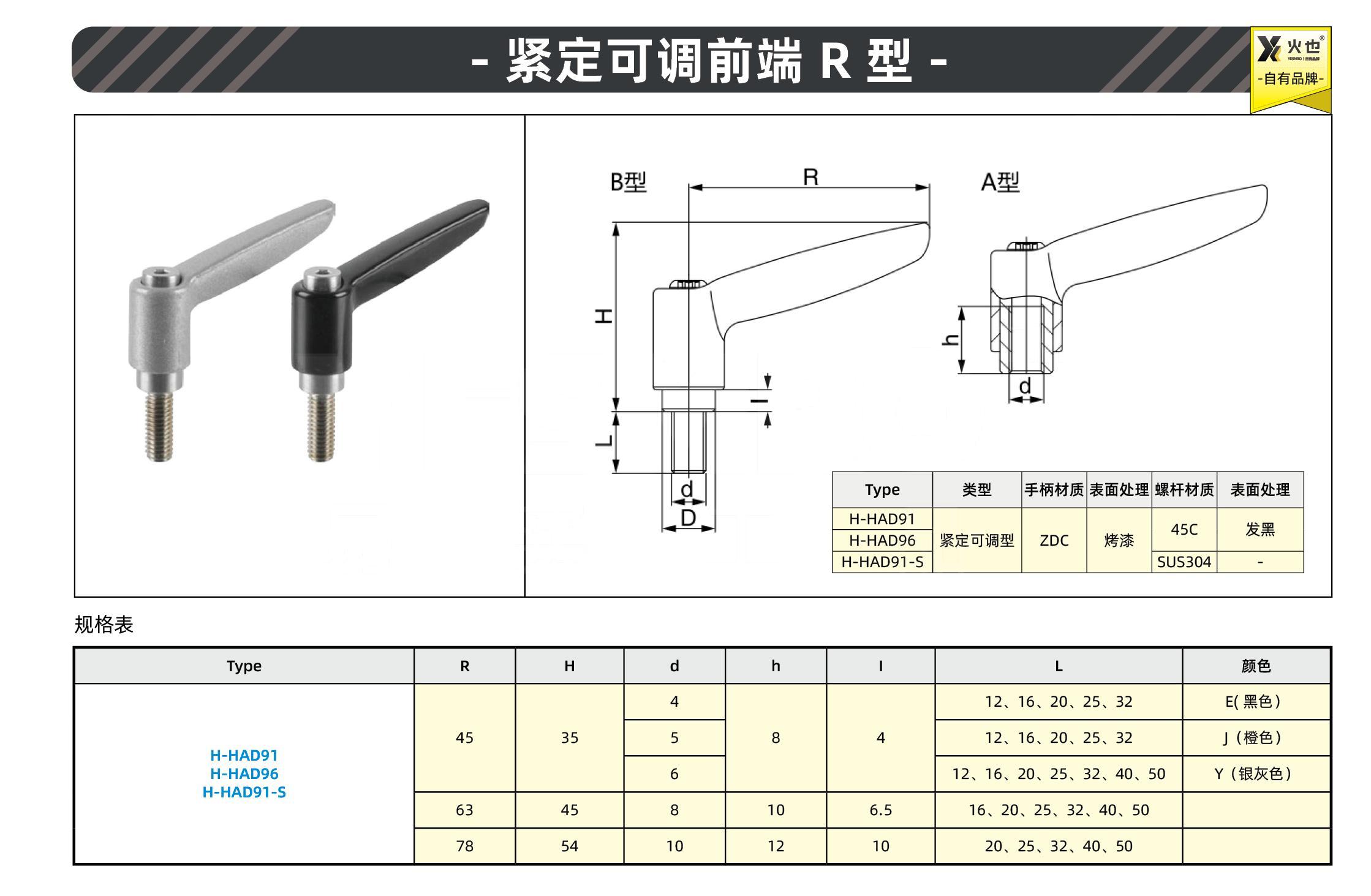 紧定可调前端R型手柄