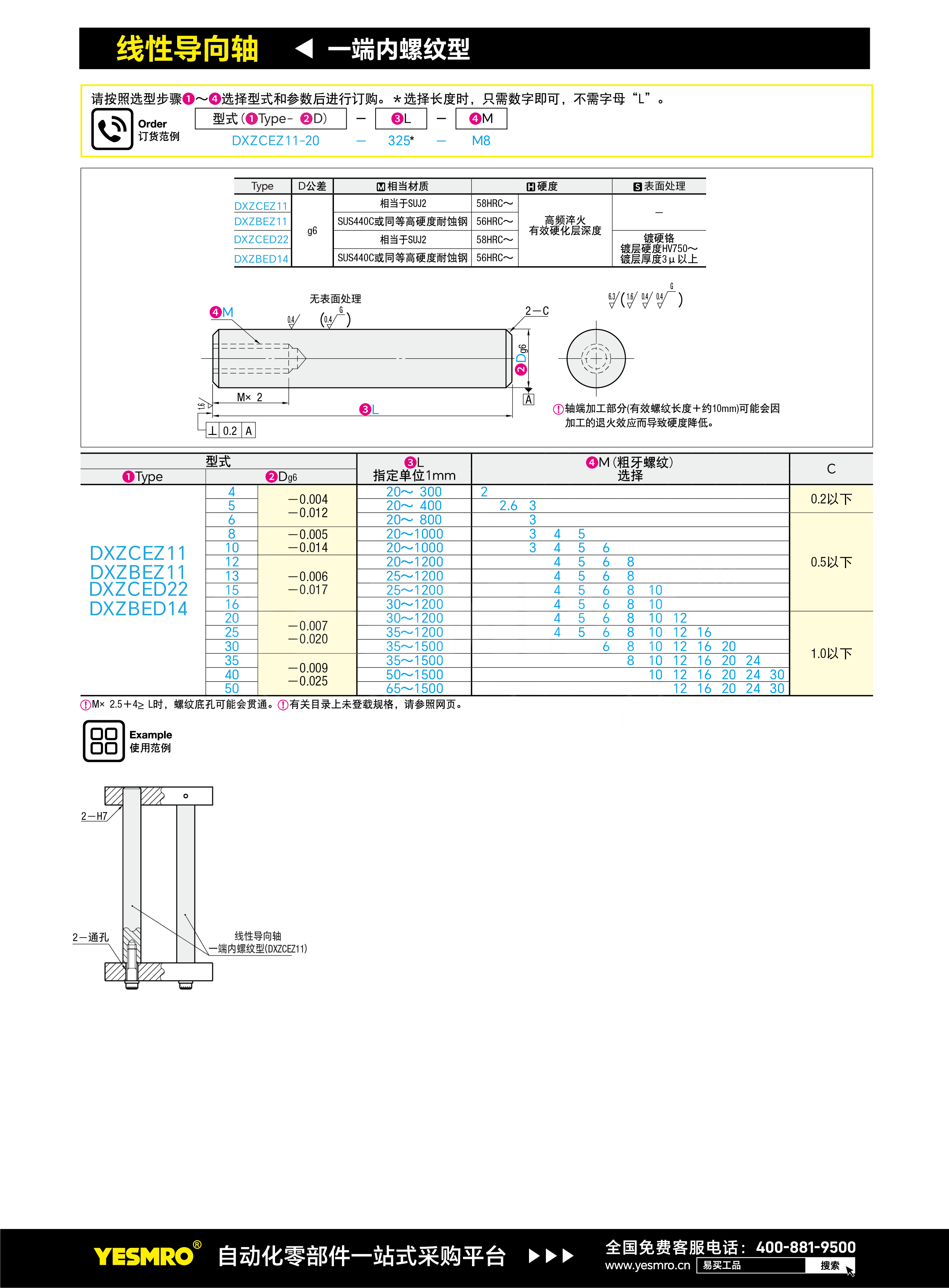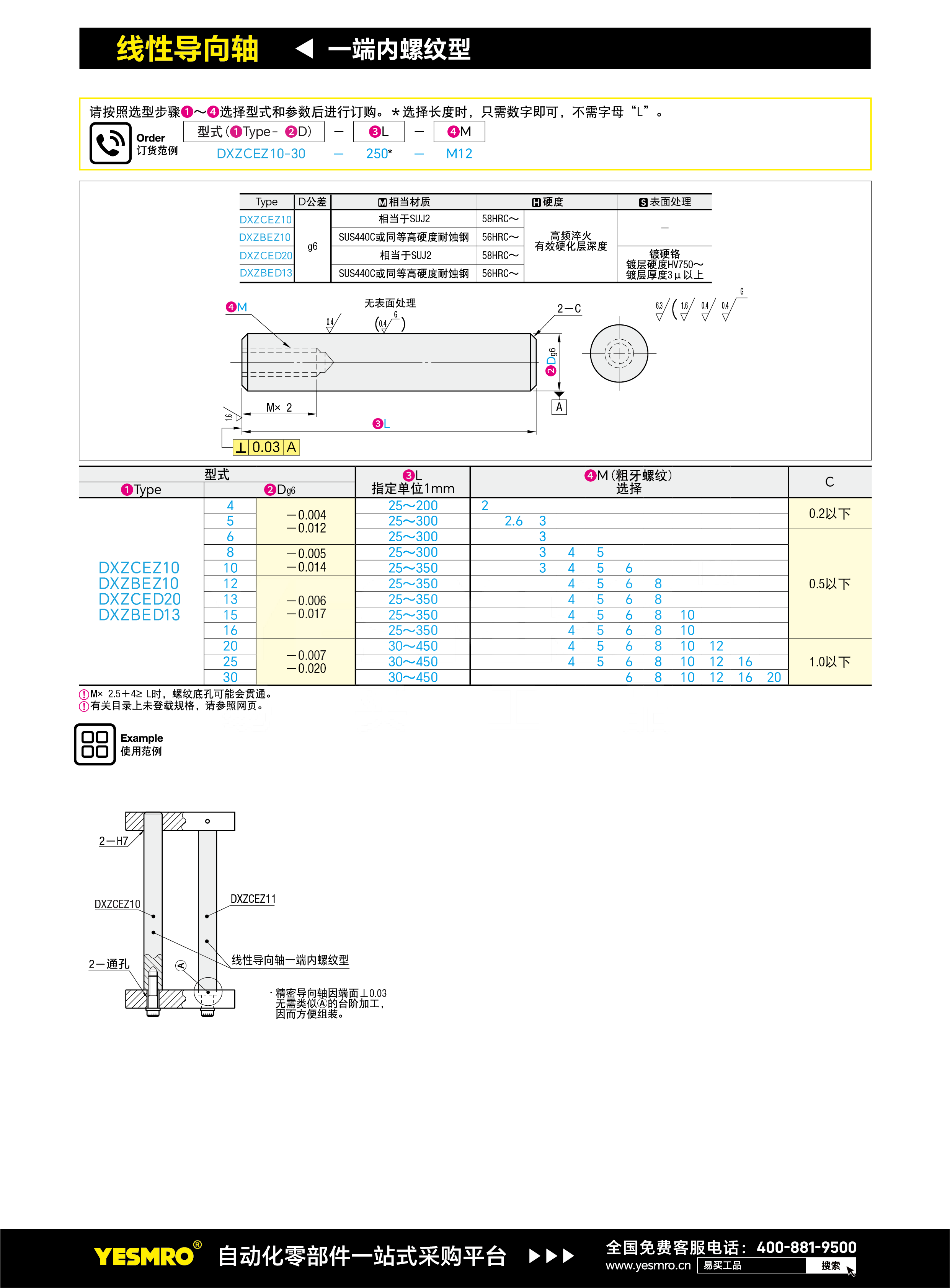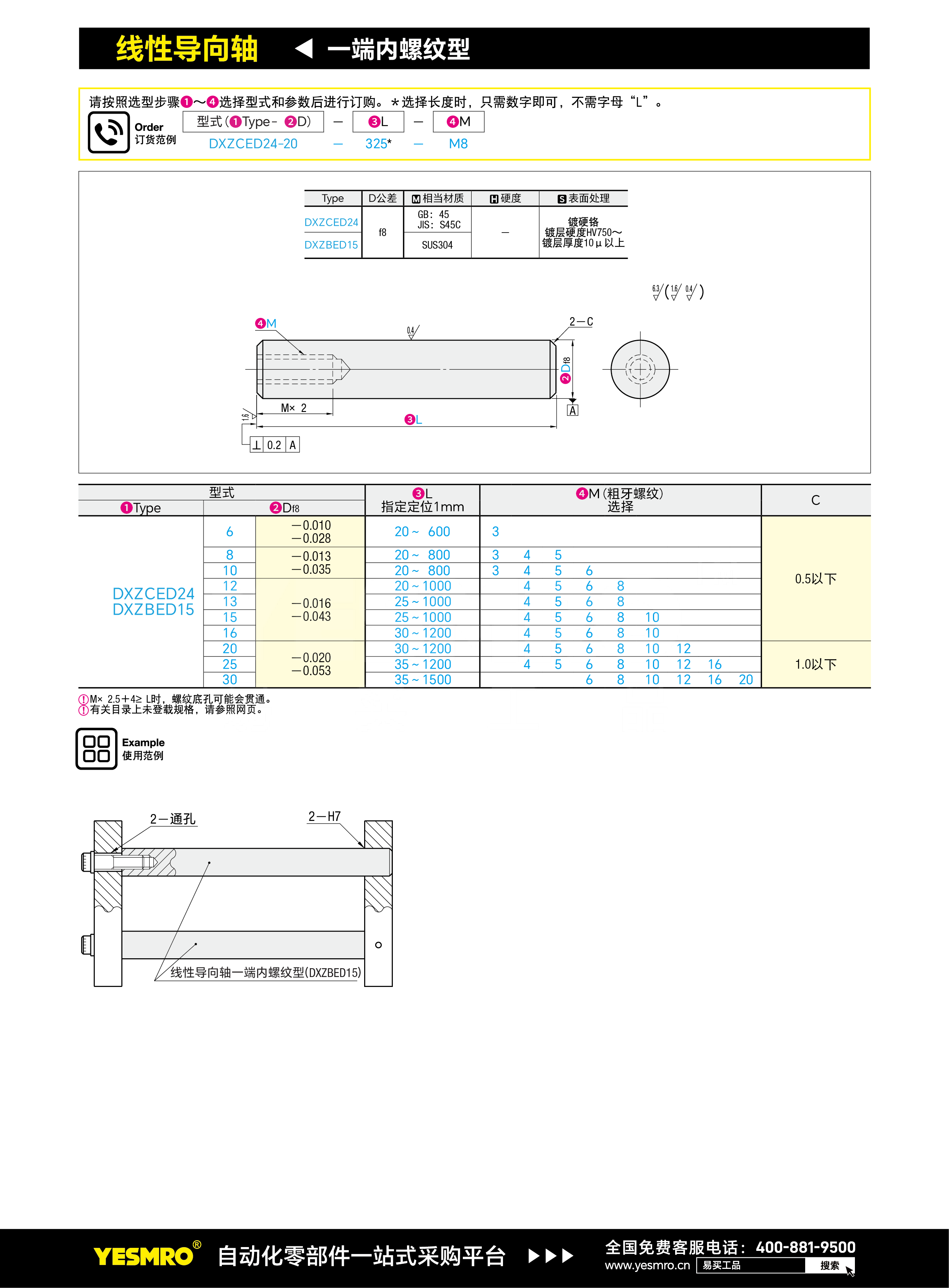 导向轴 一端内螺纹型
