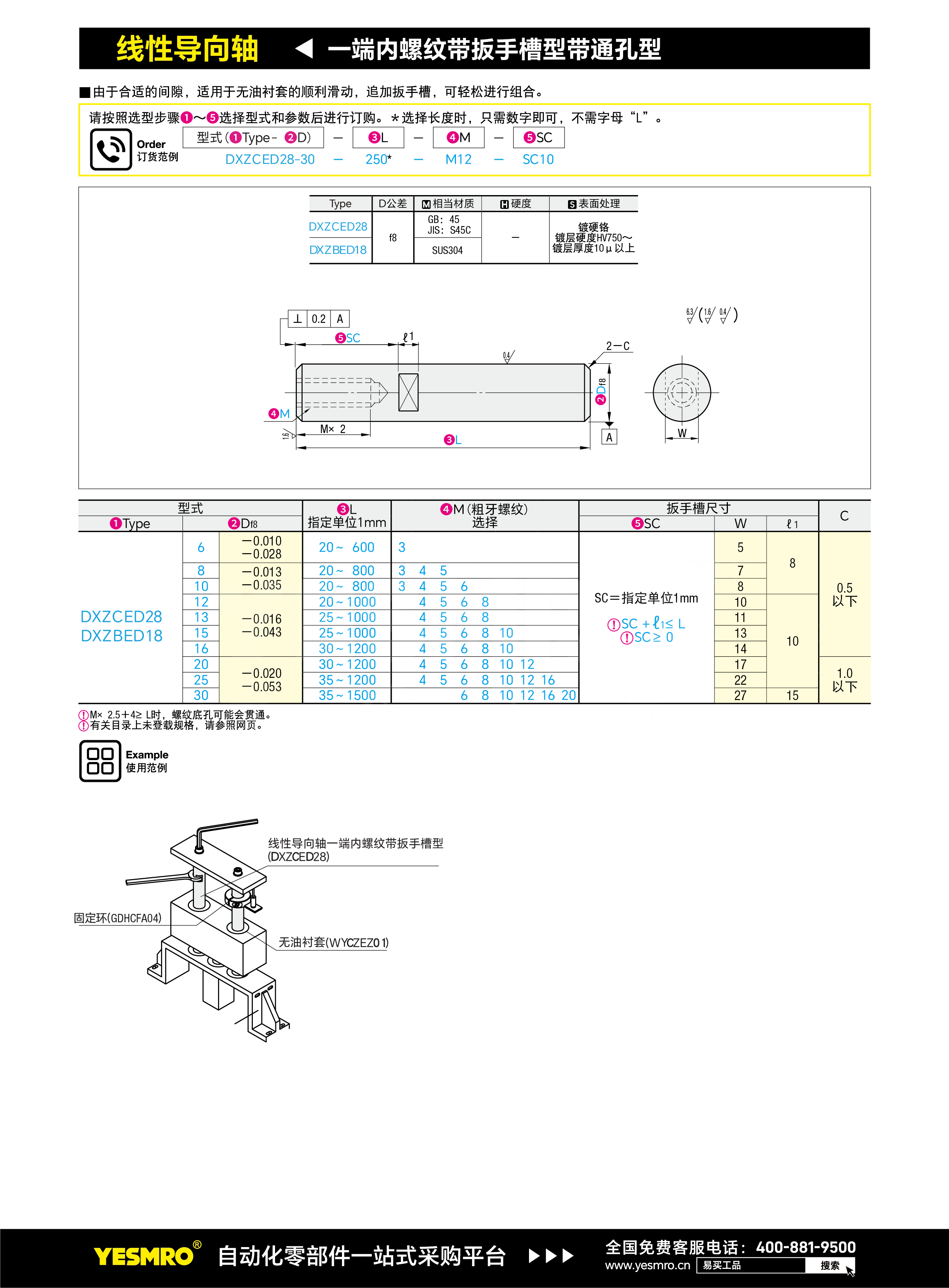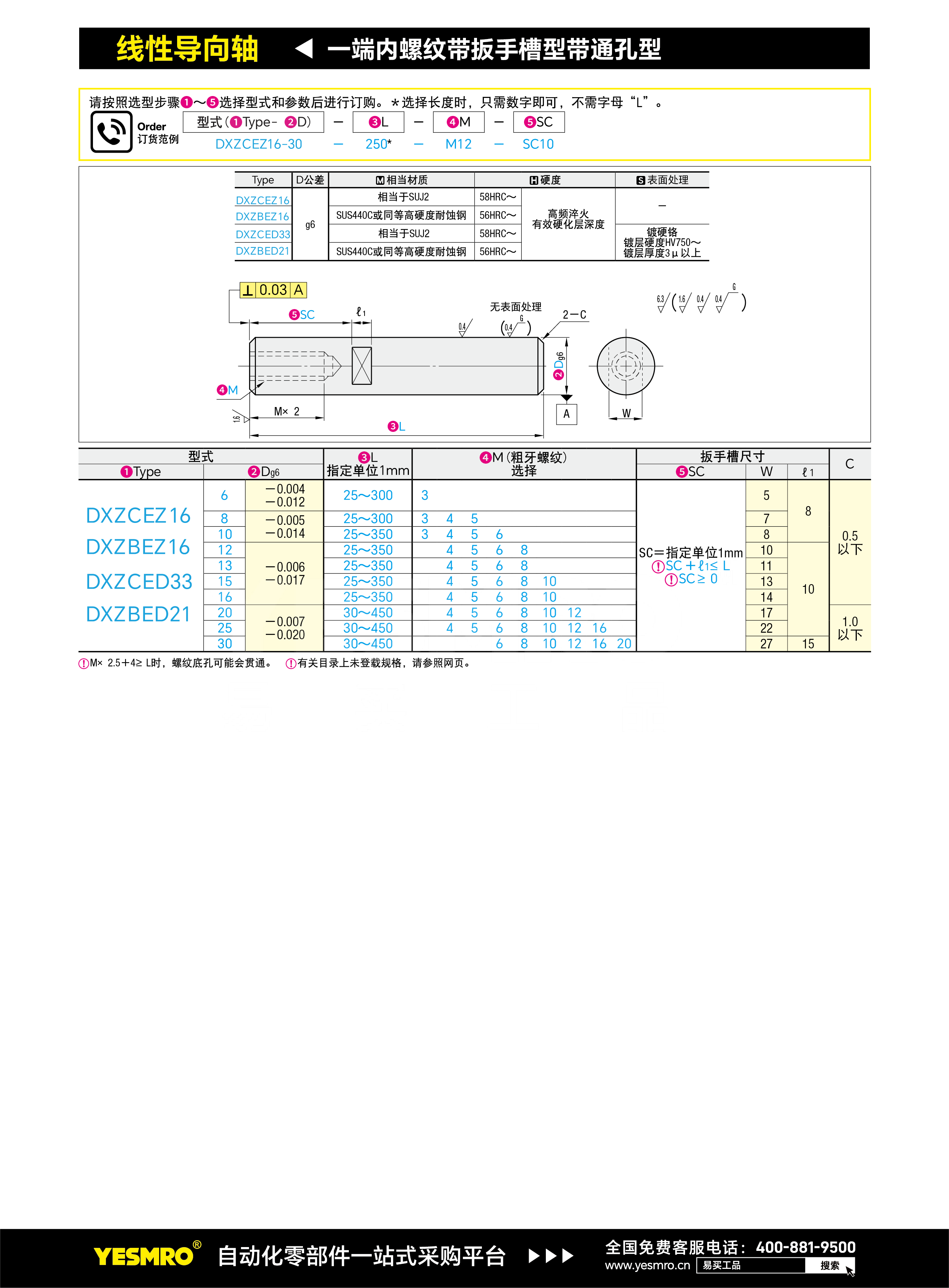导向轴 一端内螺纹带扳手槽型带通孔型