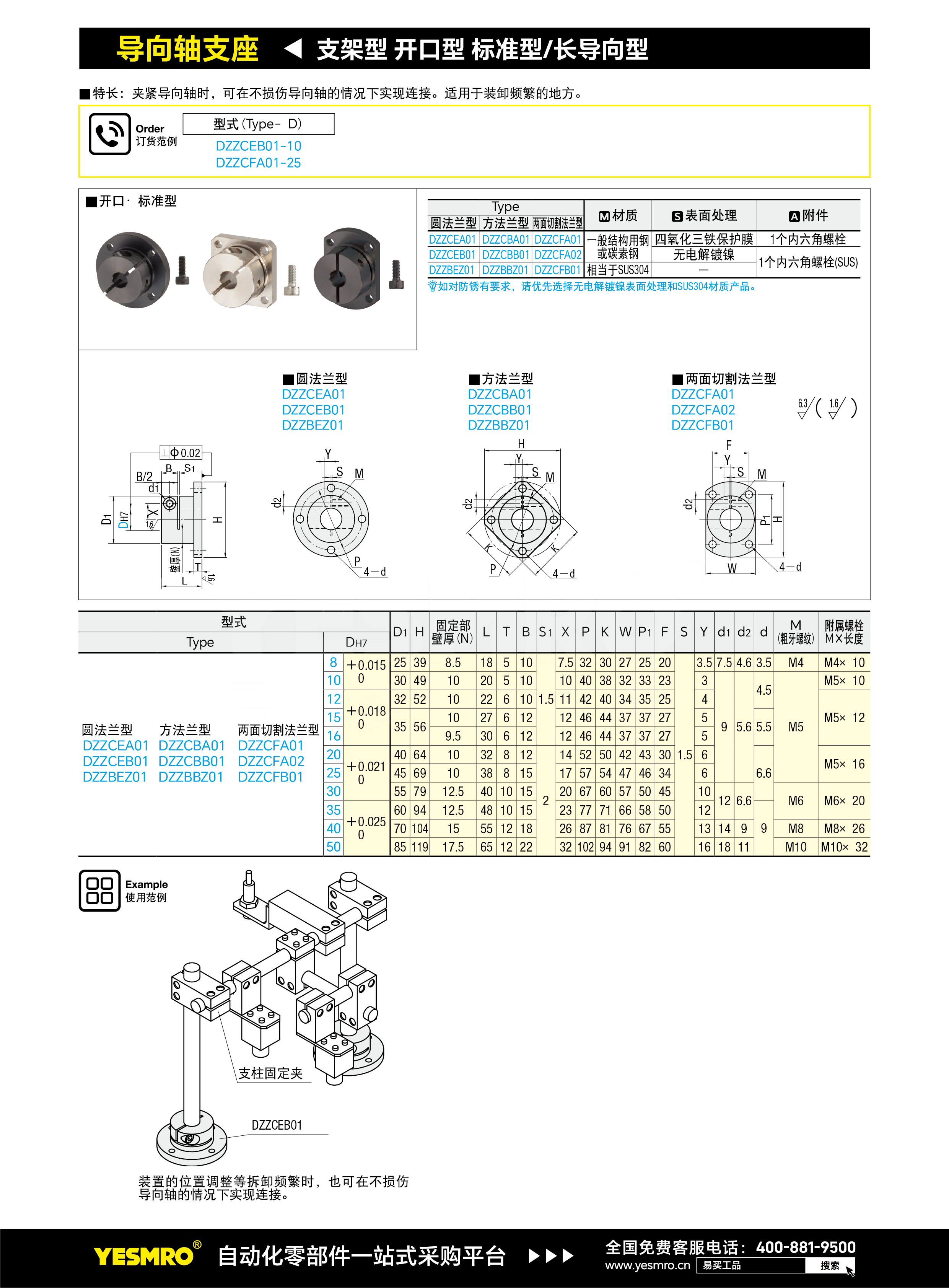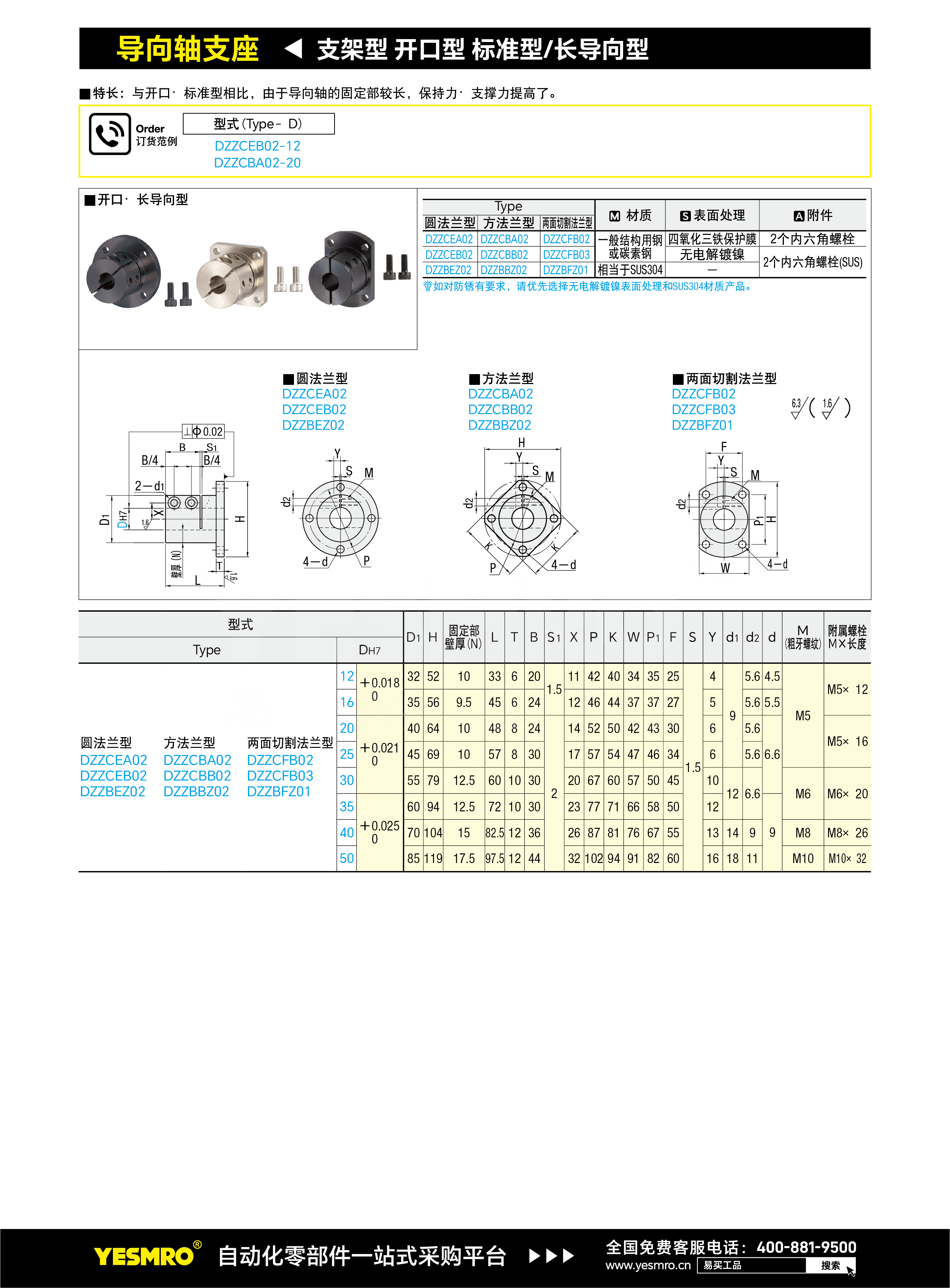 导向轴支座 支架型 开口型 标准型/长导向型