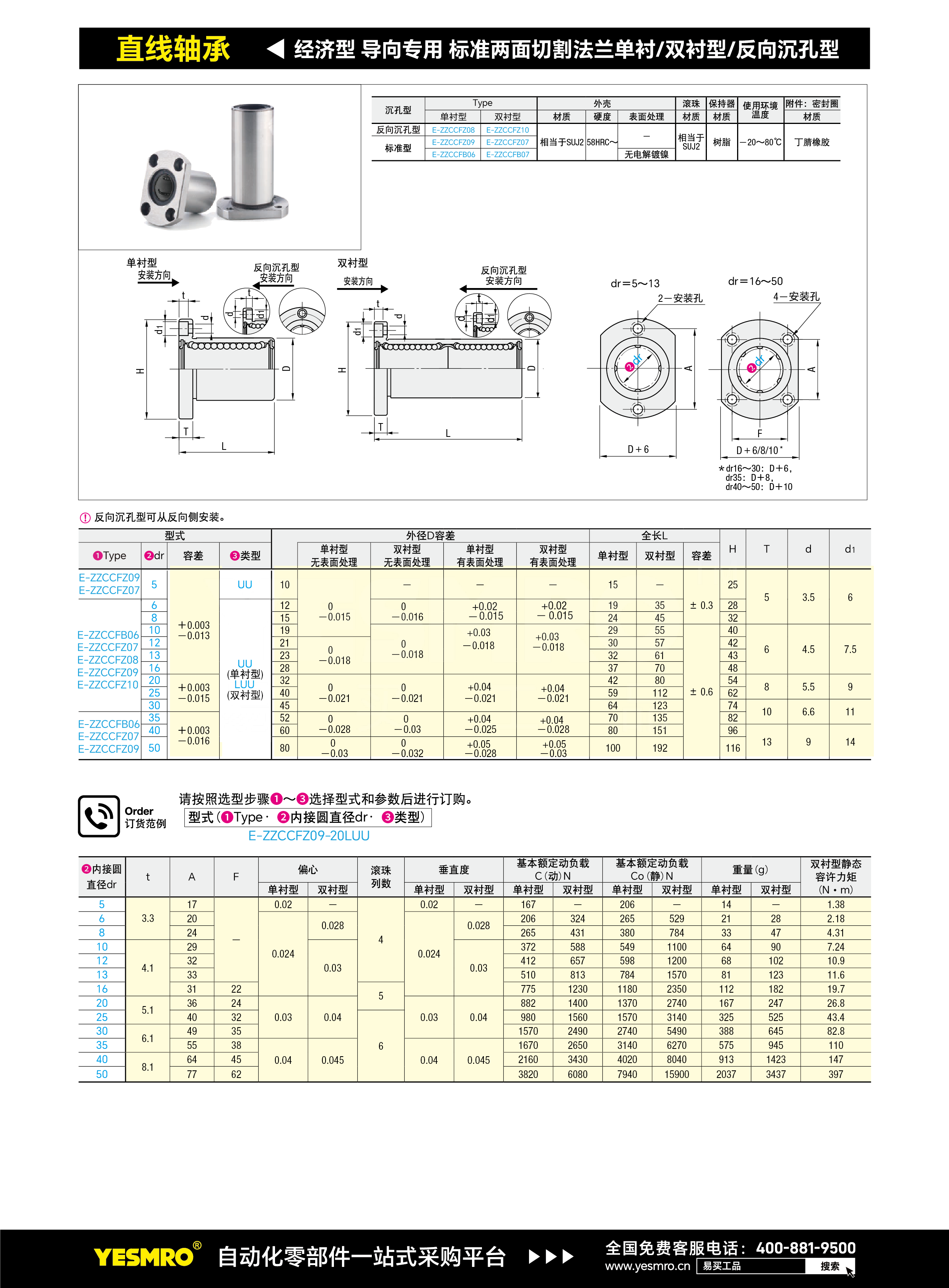 经济型 导向专用 直线轴承 标准两面切割法兰 单衬/双衬型/反向沉孔型