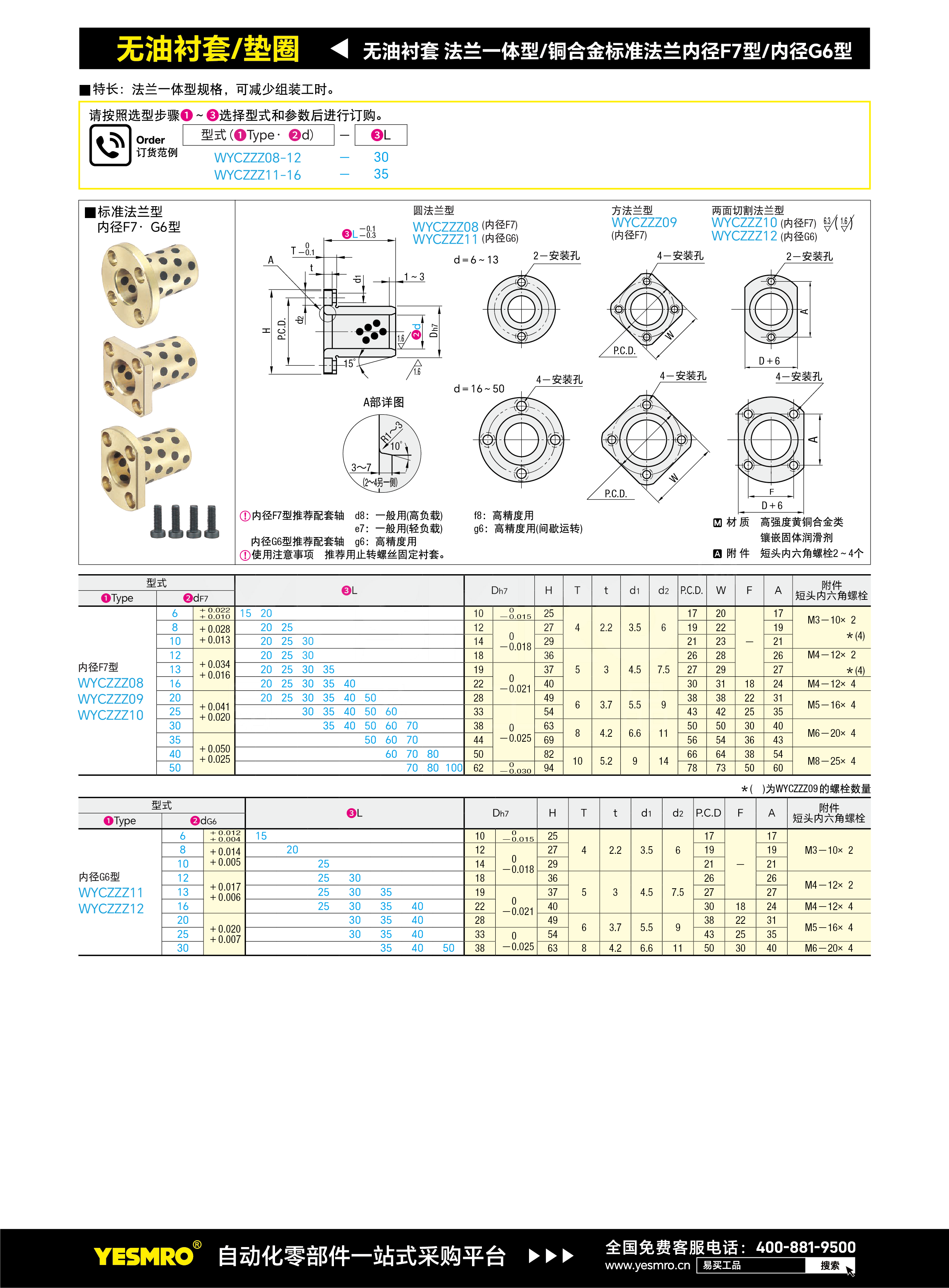 无油衬套 法兰一体型/铜合金标准法兰内径F7型/内径G6型