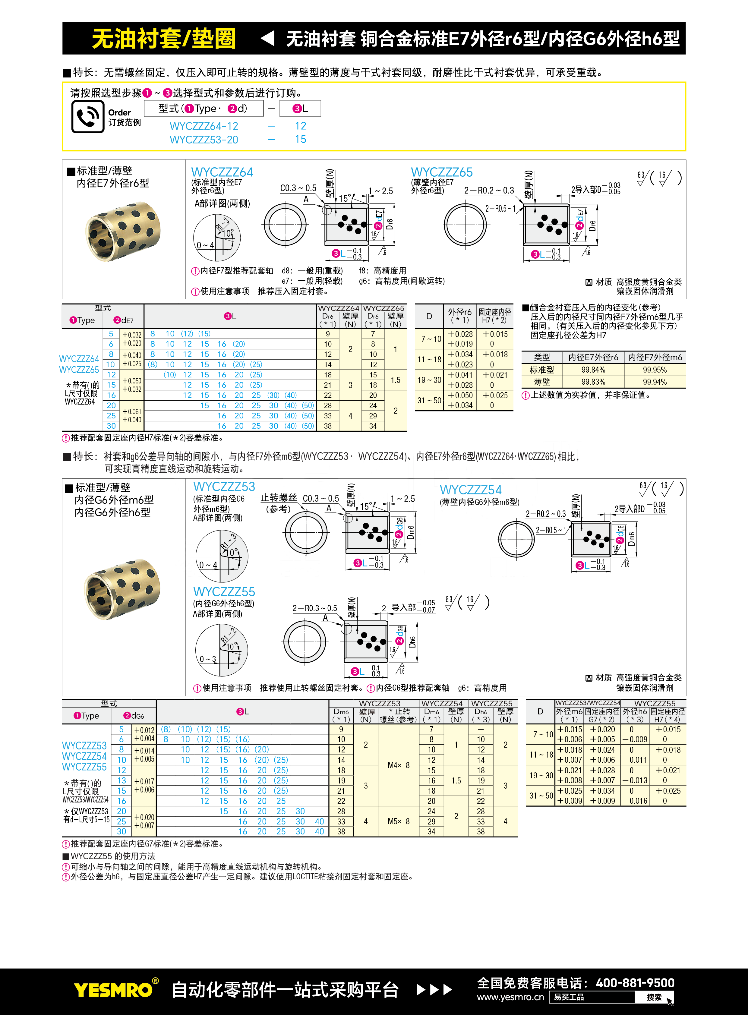 无油衬套 铜合金标准内径G6外径h6型