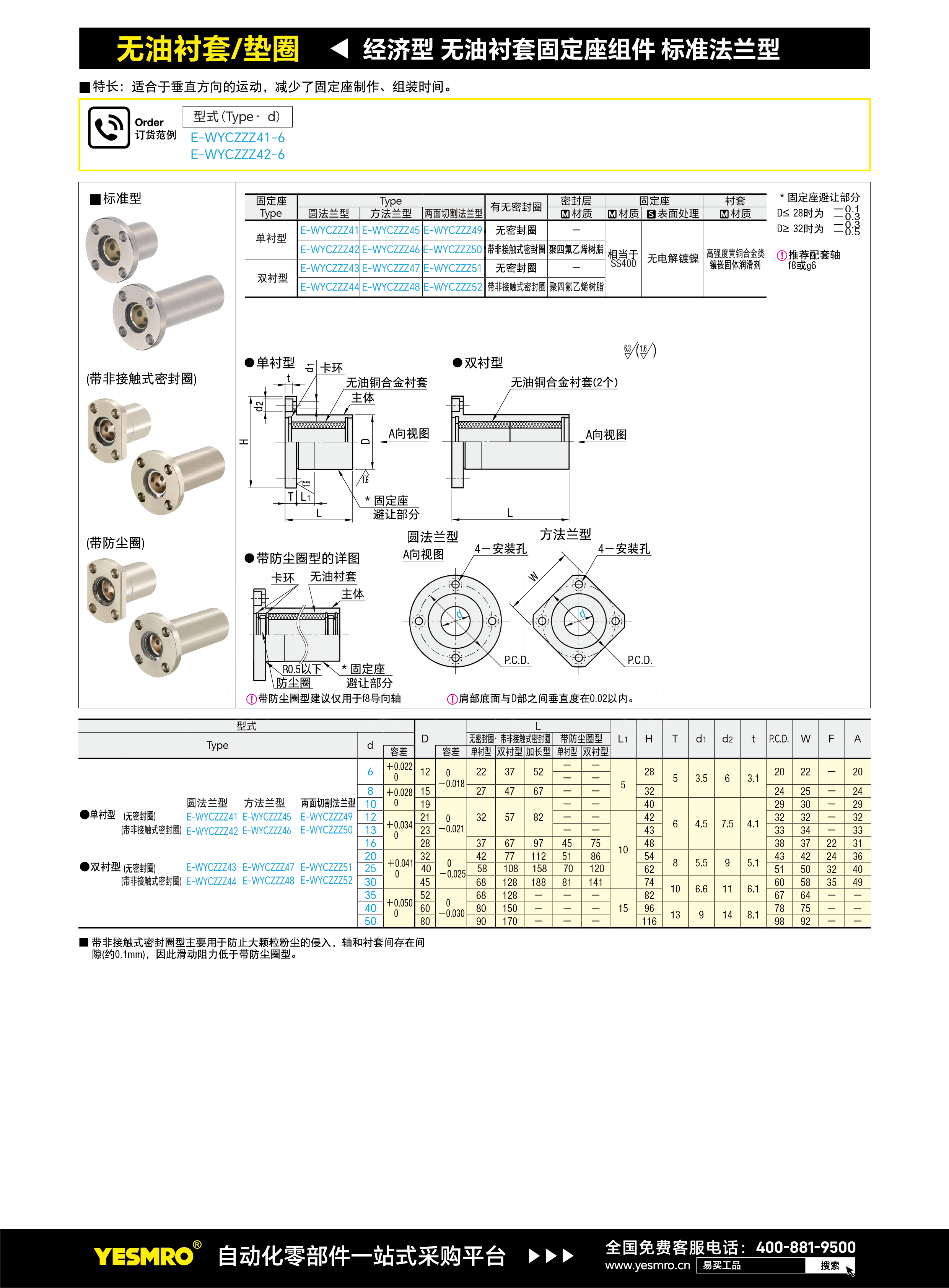经济型 无油衬套固定座组件 标准法兰型