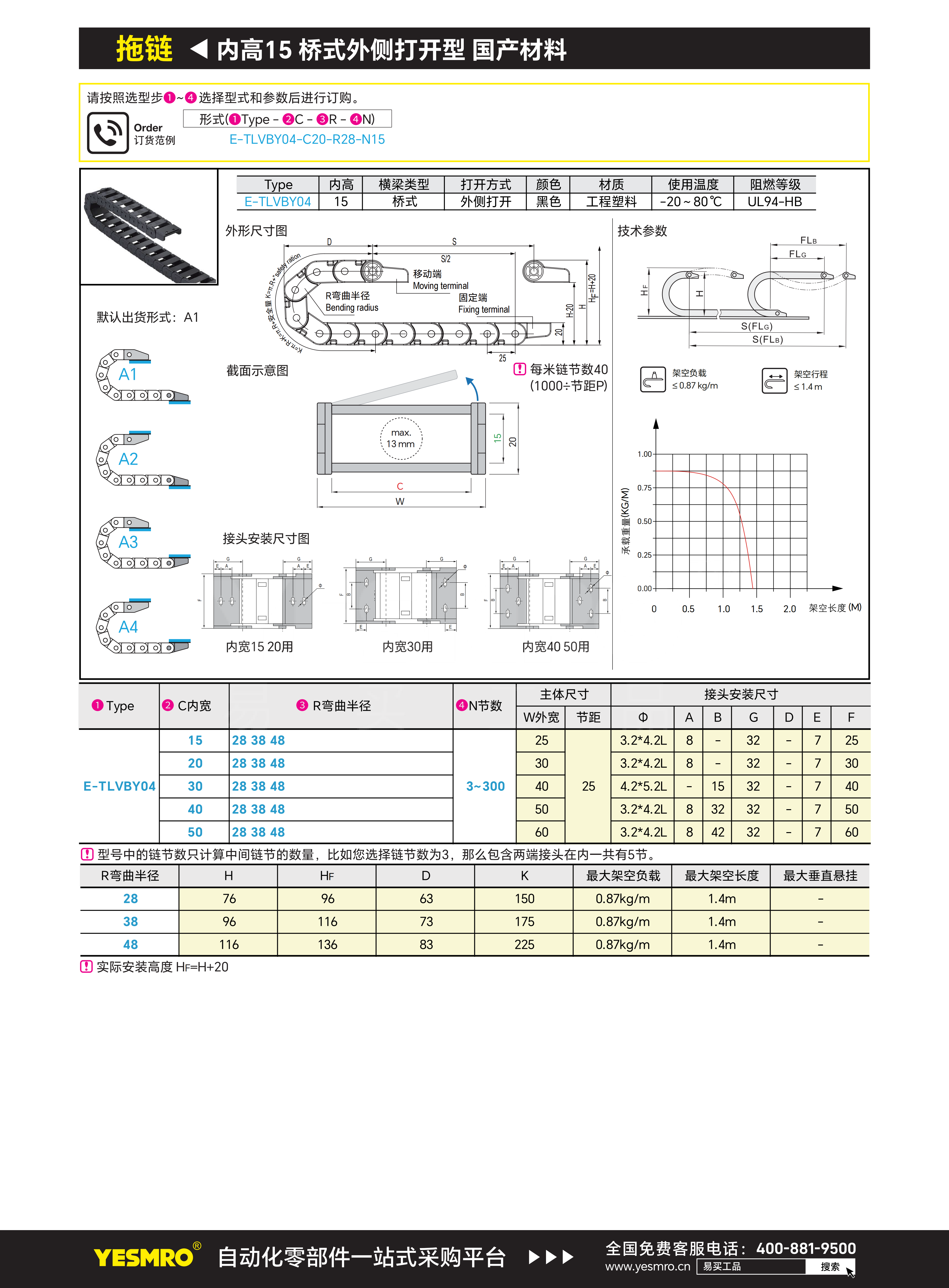 拖链 内高15 桥式外侧打开型 国产材料 节距25