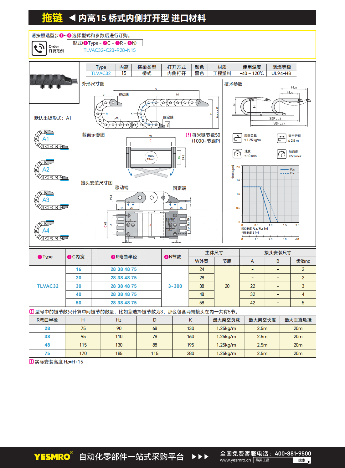 拖链 内高15 桥式内侧打开型 进口材料 节距20