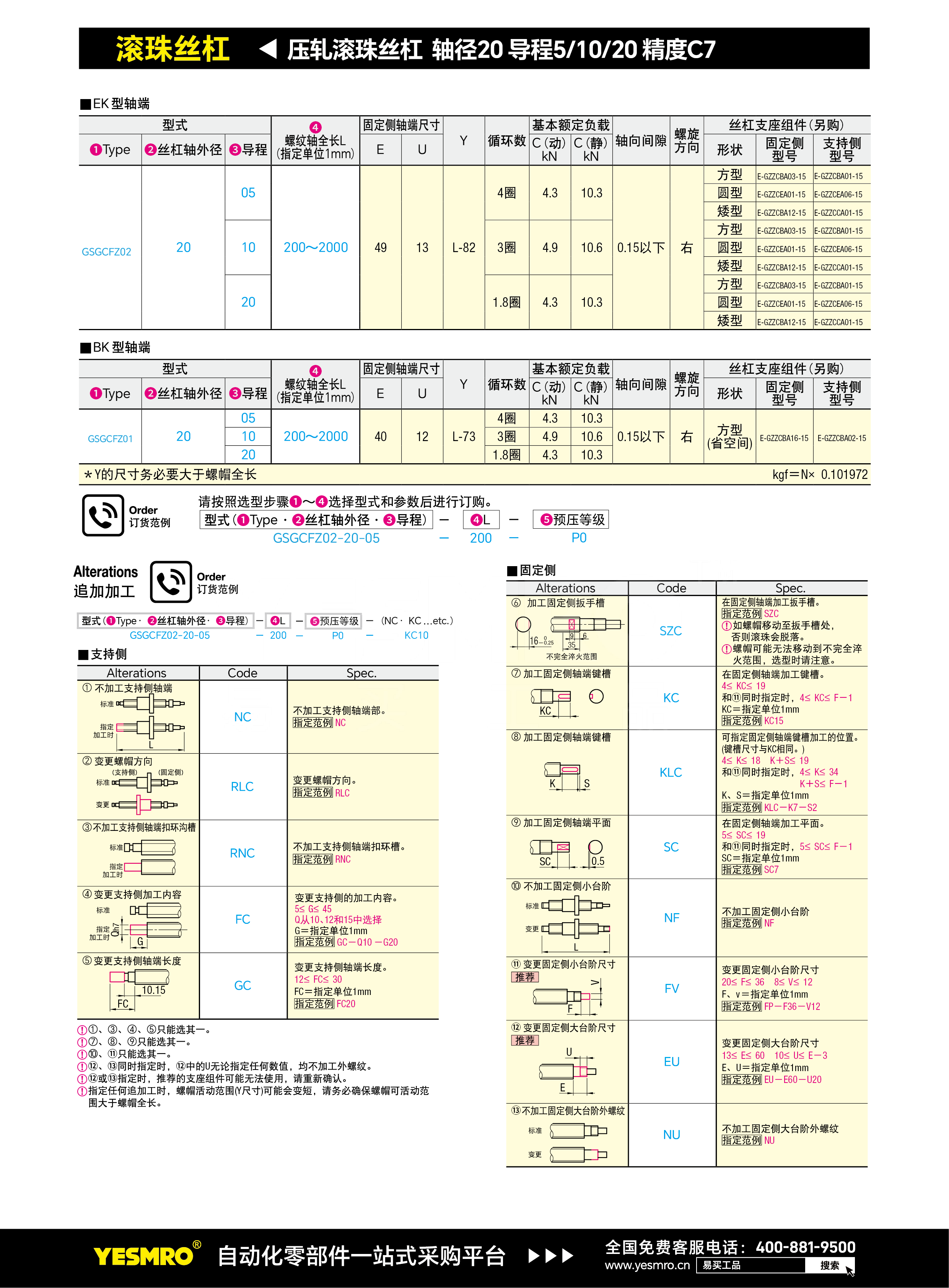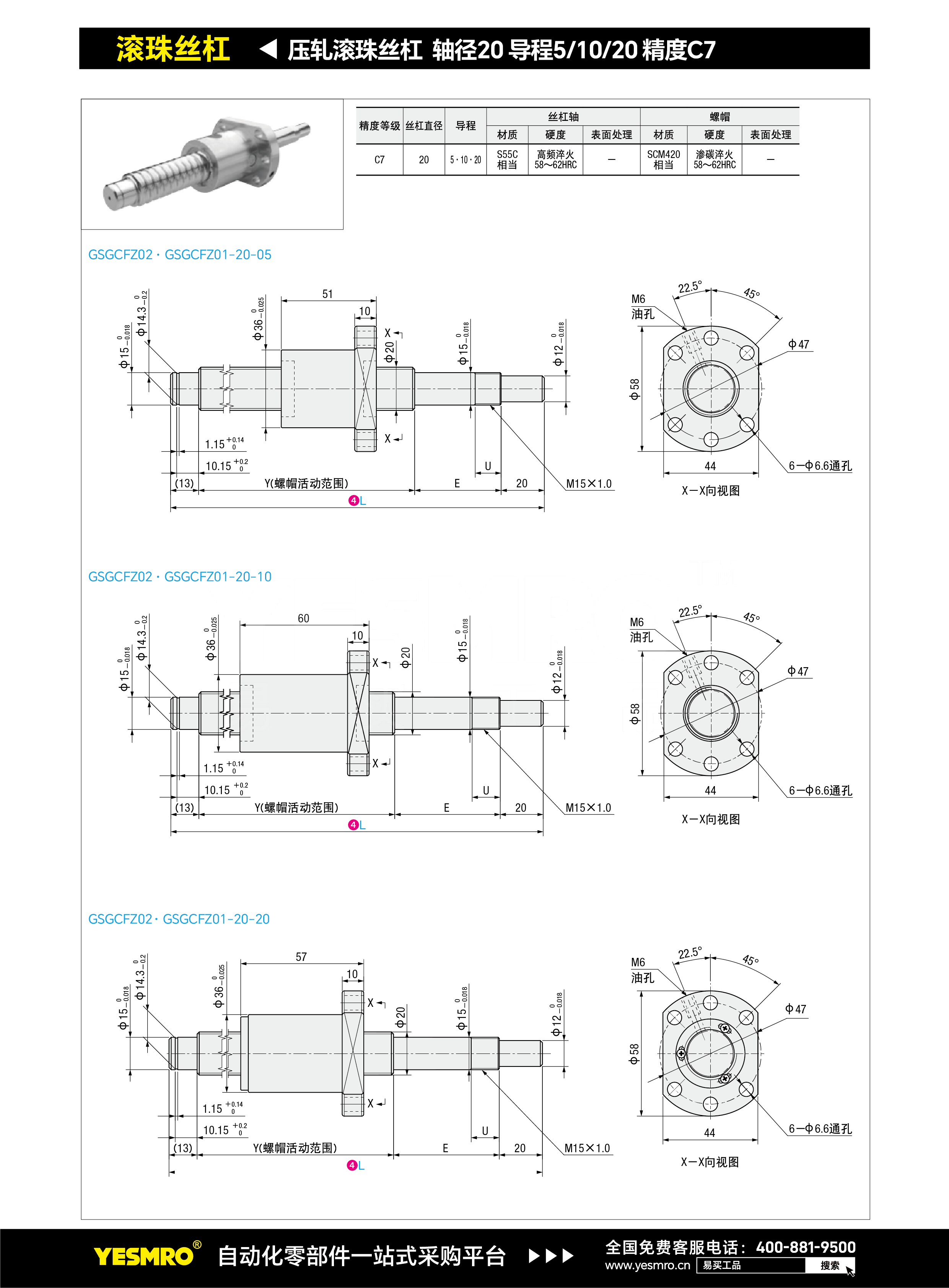 压轧滚珠丝杠 轴径20 导程5/10/20 精度C7