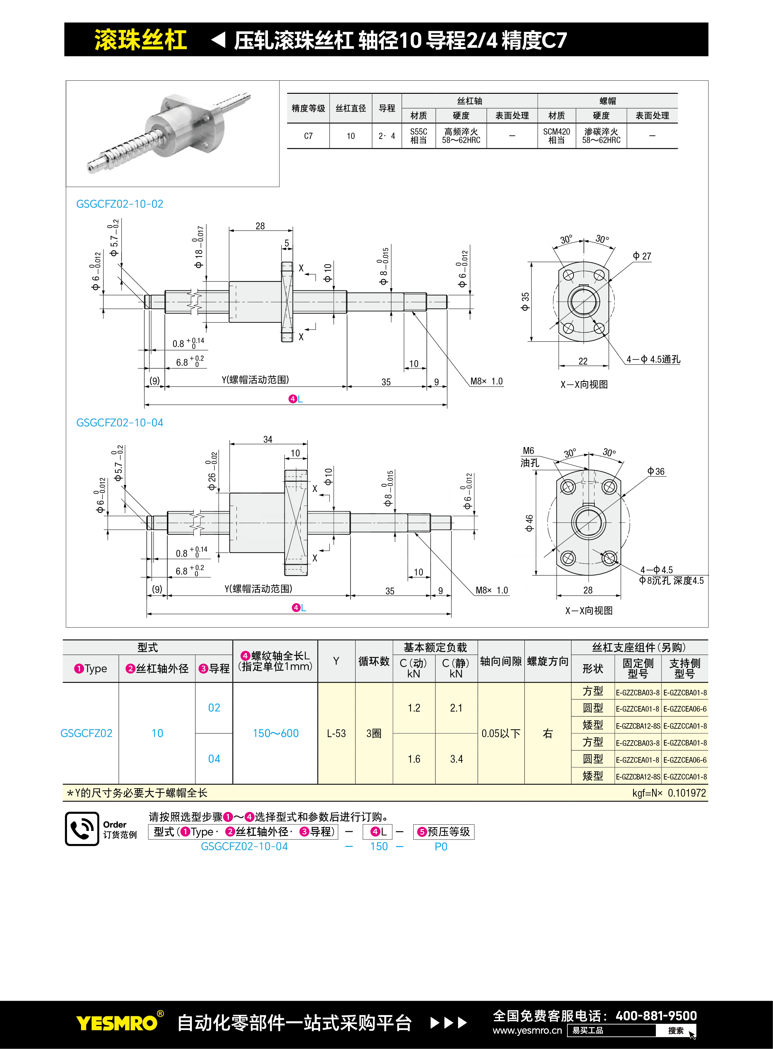 压轧滚珠丝杠 轴径10 导程2/4 精度C7