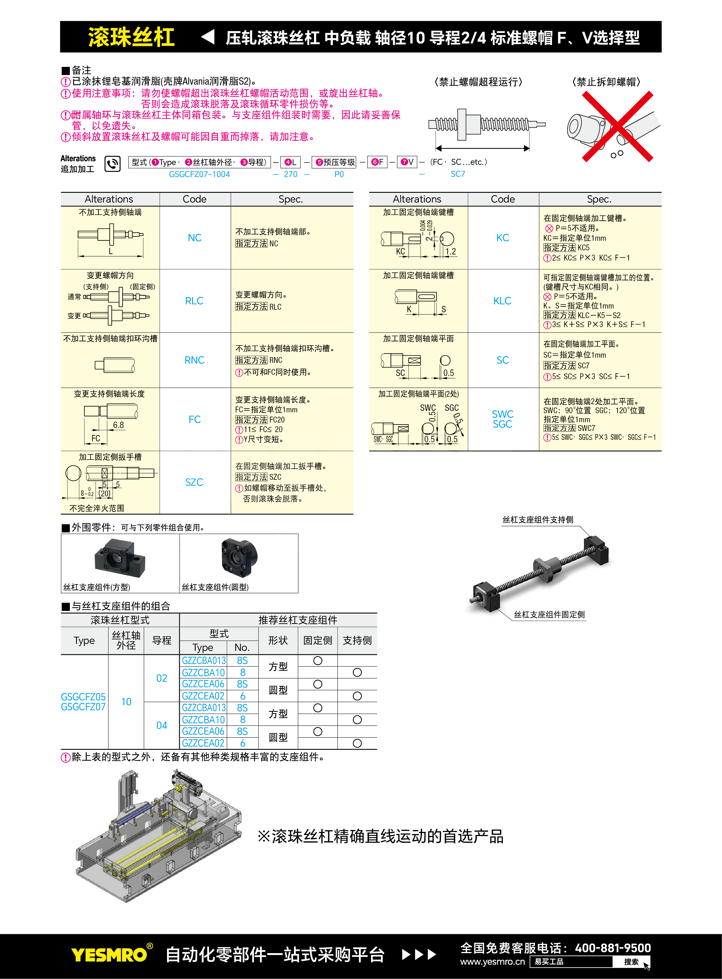 压轧滚珠丝杠 中负载 轴径10 导程2/4 标准螺帽 F、V标准型