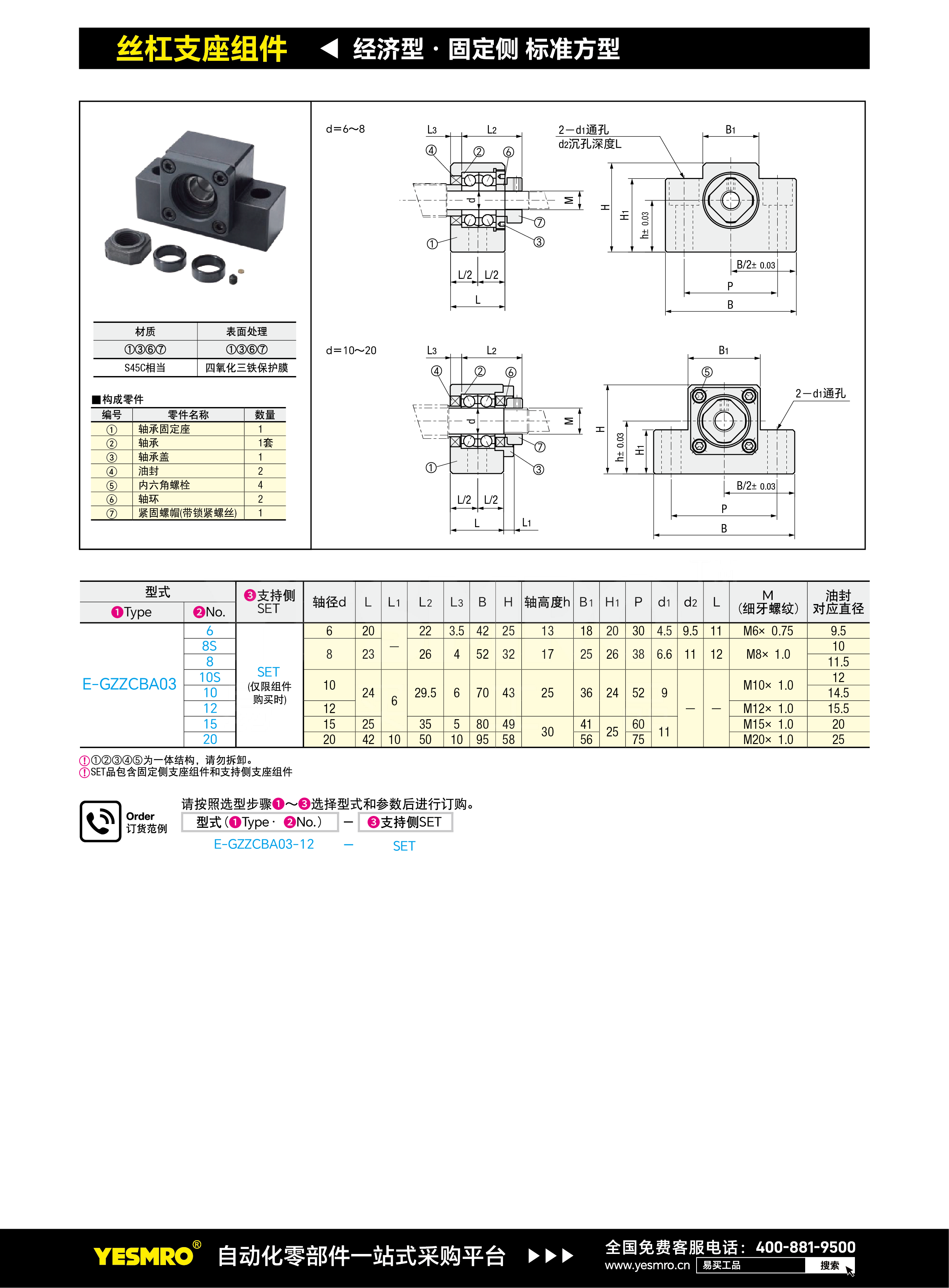 经济型 丝杠支座组件 固定侧 方型 低肩型 EK