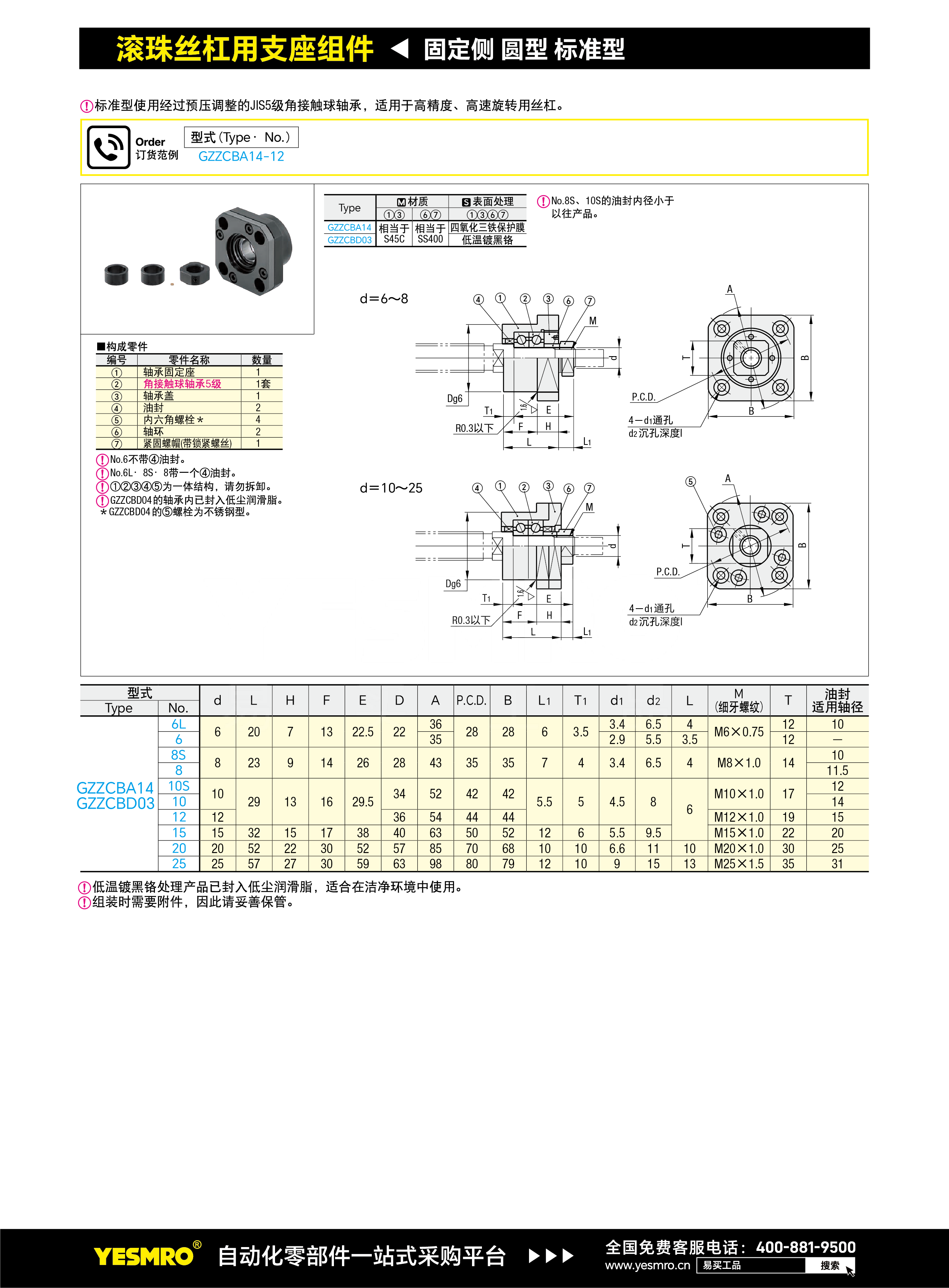 丝杠支座组件 固定侧 圆型 标准型 FK