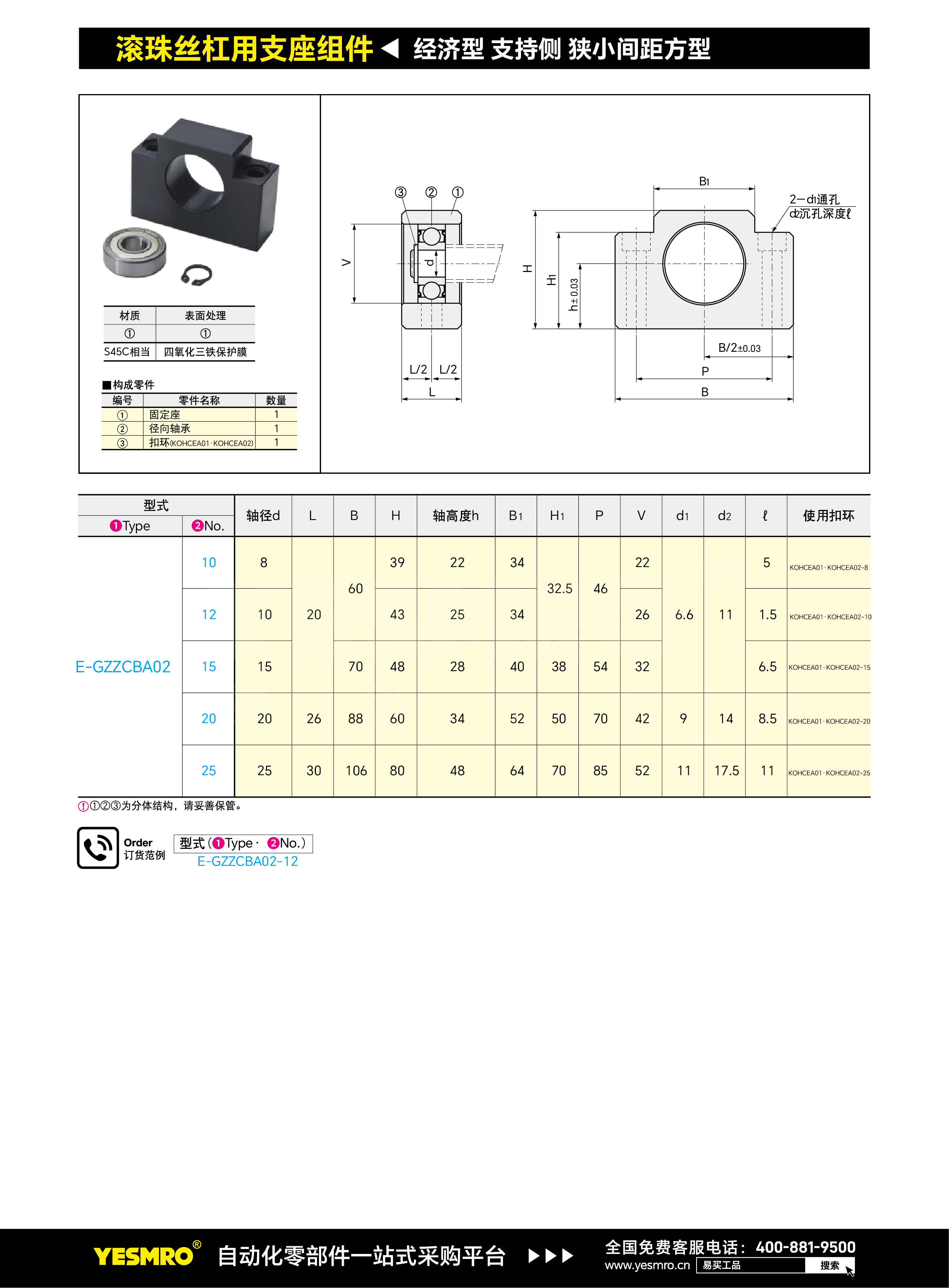经济型 丝杠支座组件 支持侧 方型 狭小间距型 BF