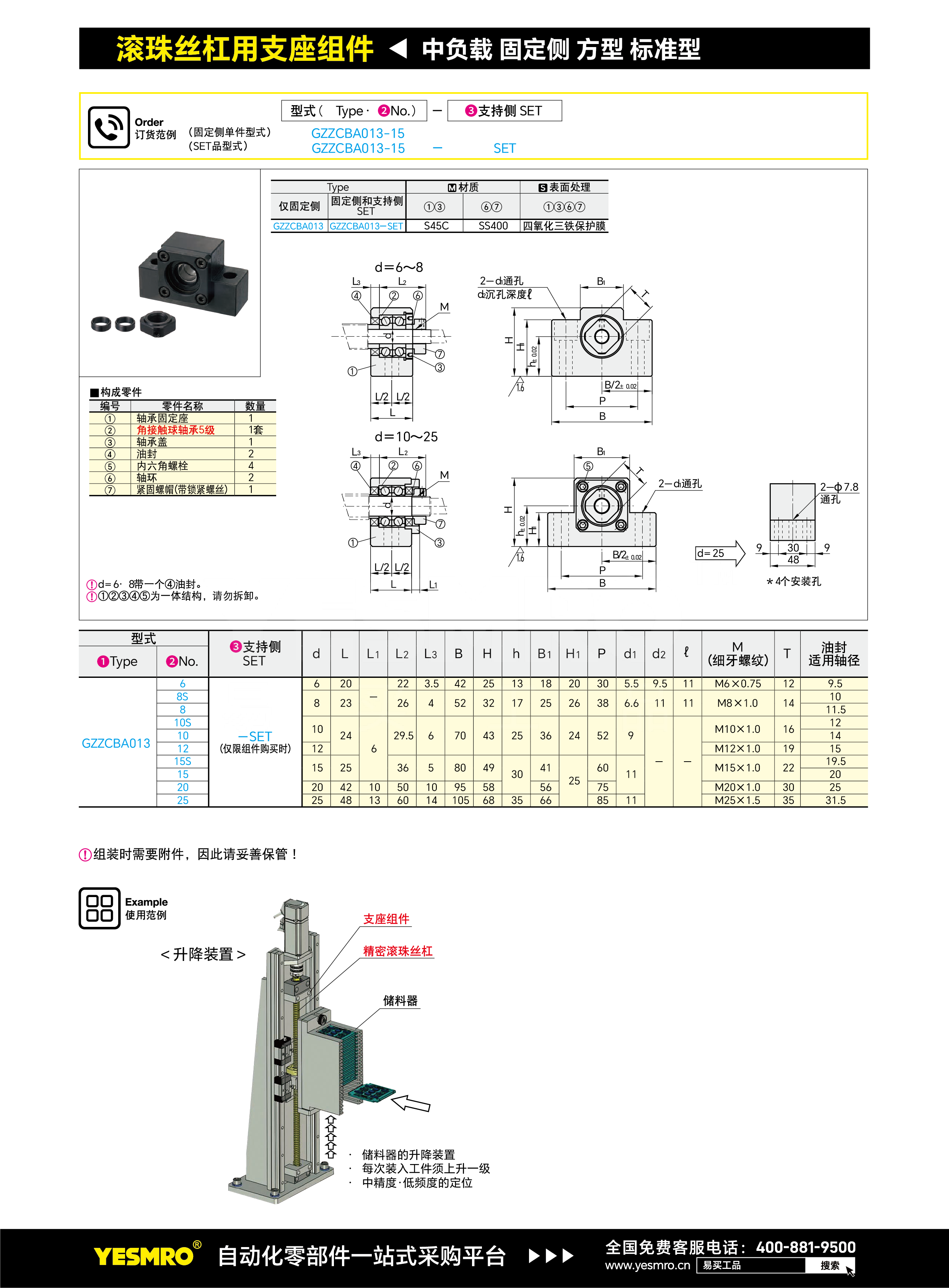 丝杠支座组件 固定侧 方型 低肩型 EK