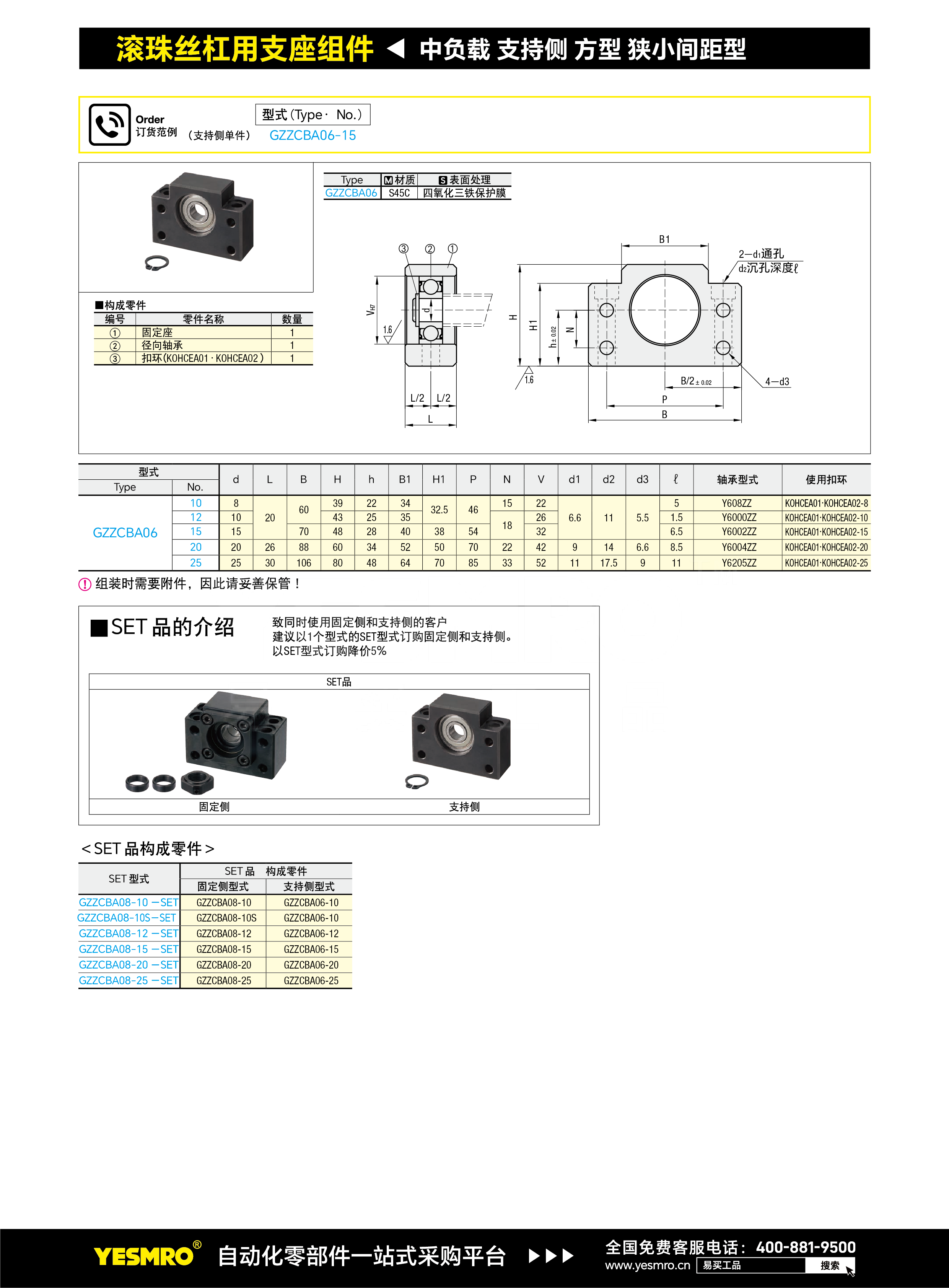 丝杠支座组件 支持侧 方型 狭小间距型 BF