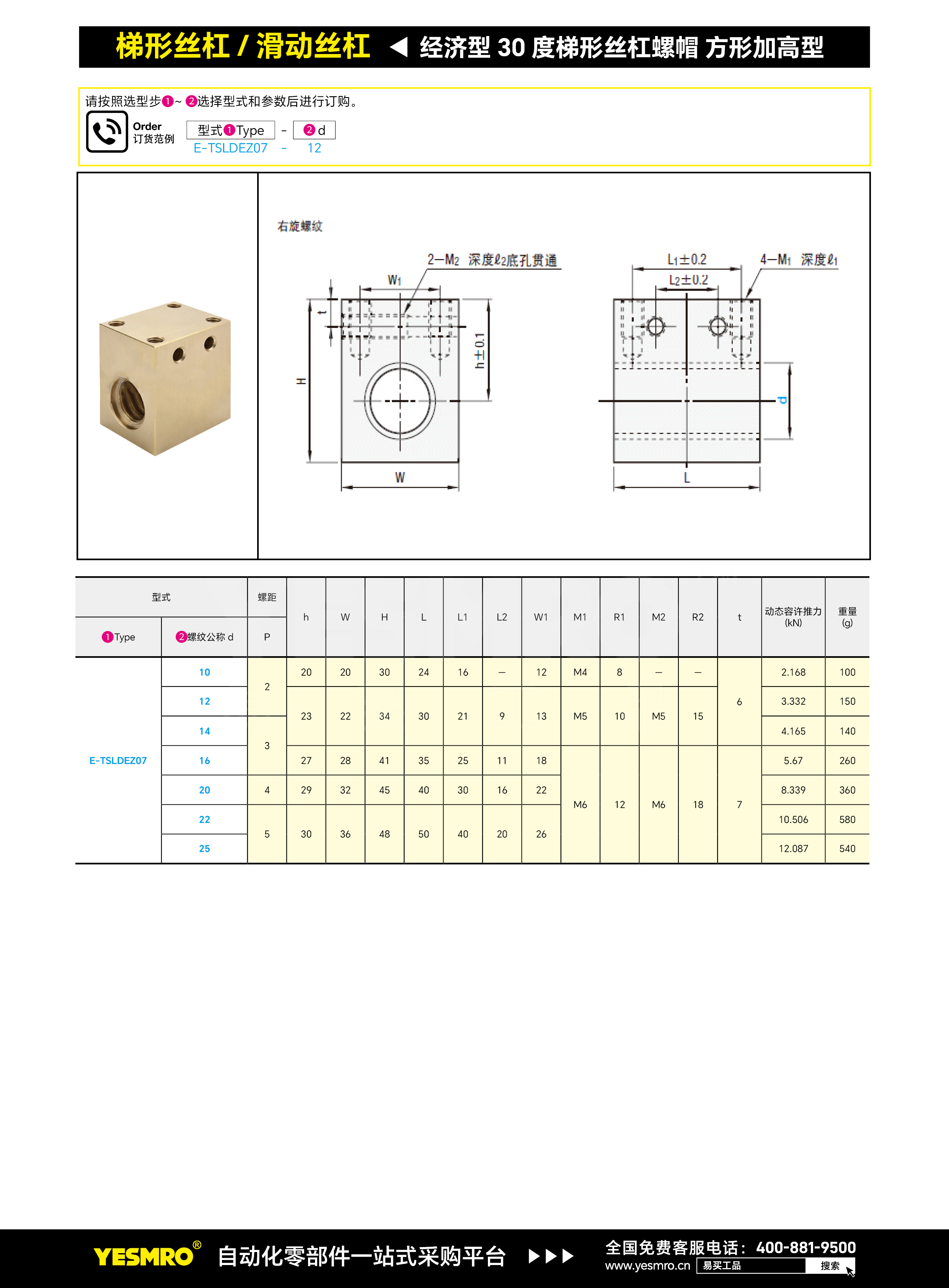 经济型 30度梯形丝杠螺帽 方形加高型