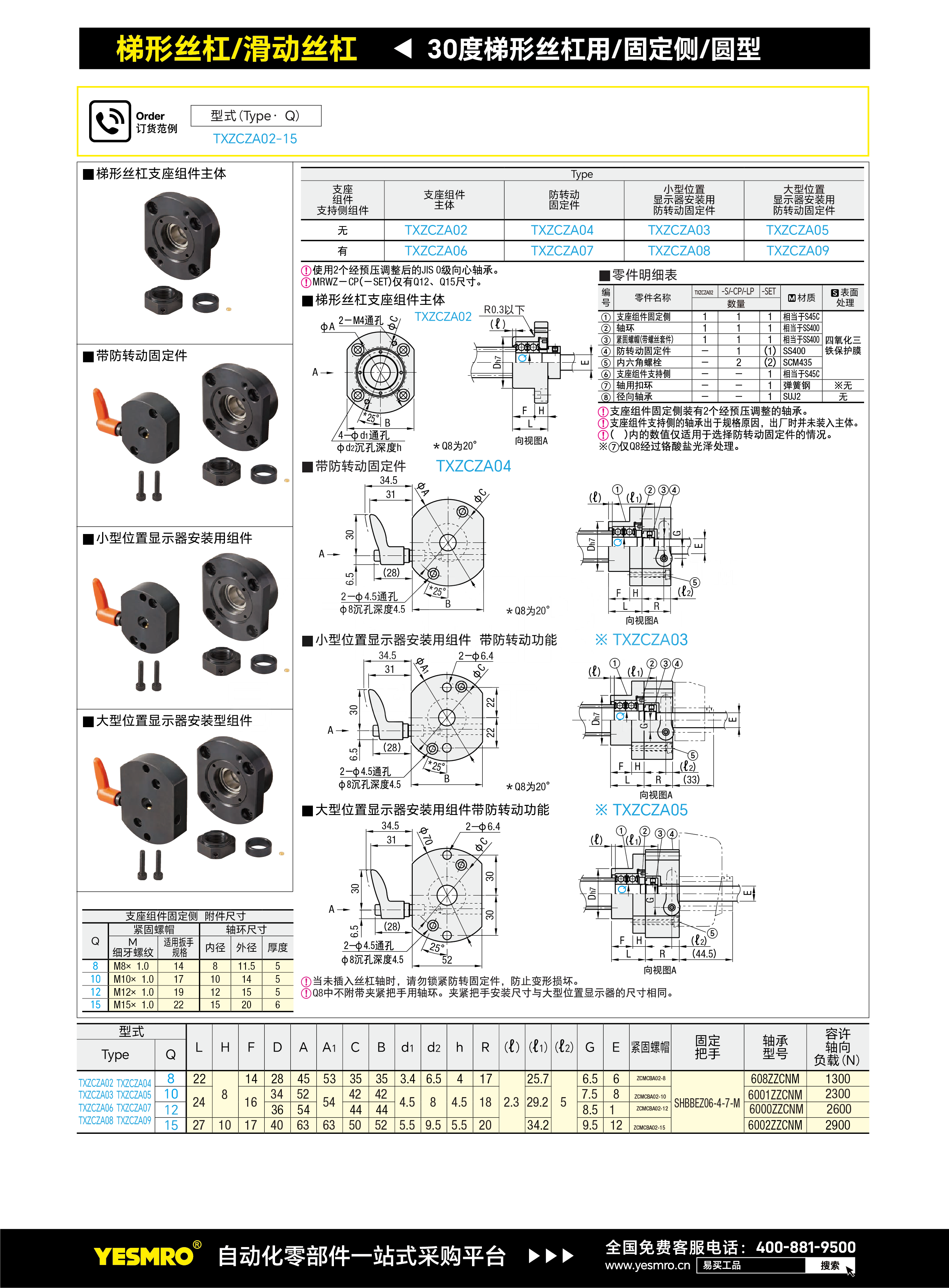 丝杠支座组件 30度梯形丝杠/固定侧/圆型