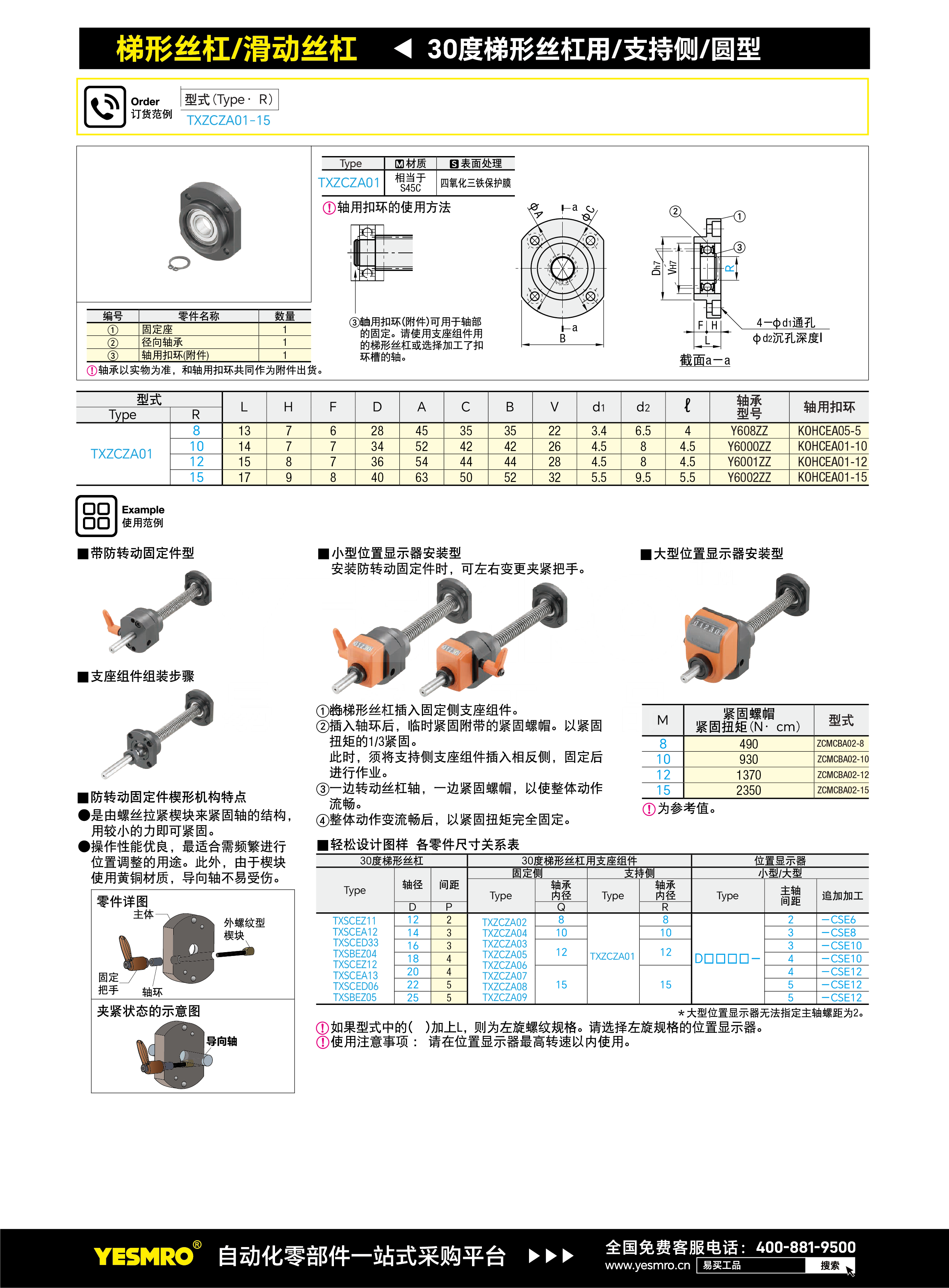 丝杠支座组件 30度梯形丝杠/支持侧/圆型