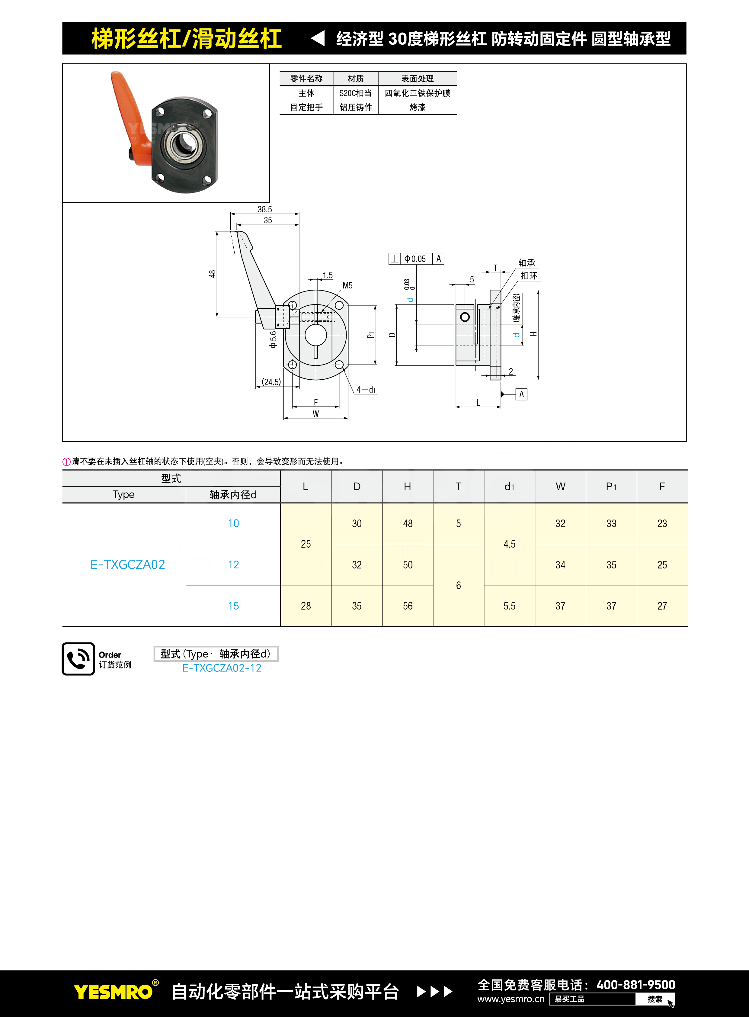 经济型 30度梯形丝杠防转动固定件 圆型轴承型