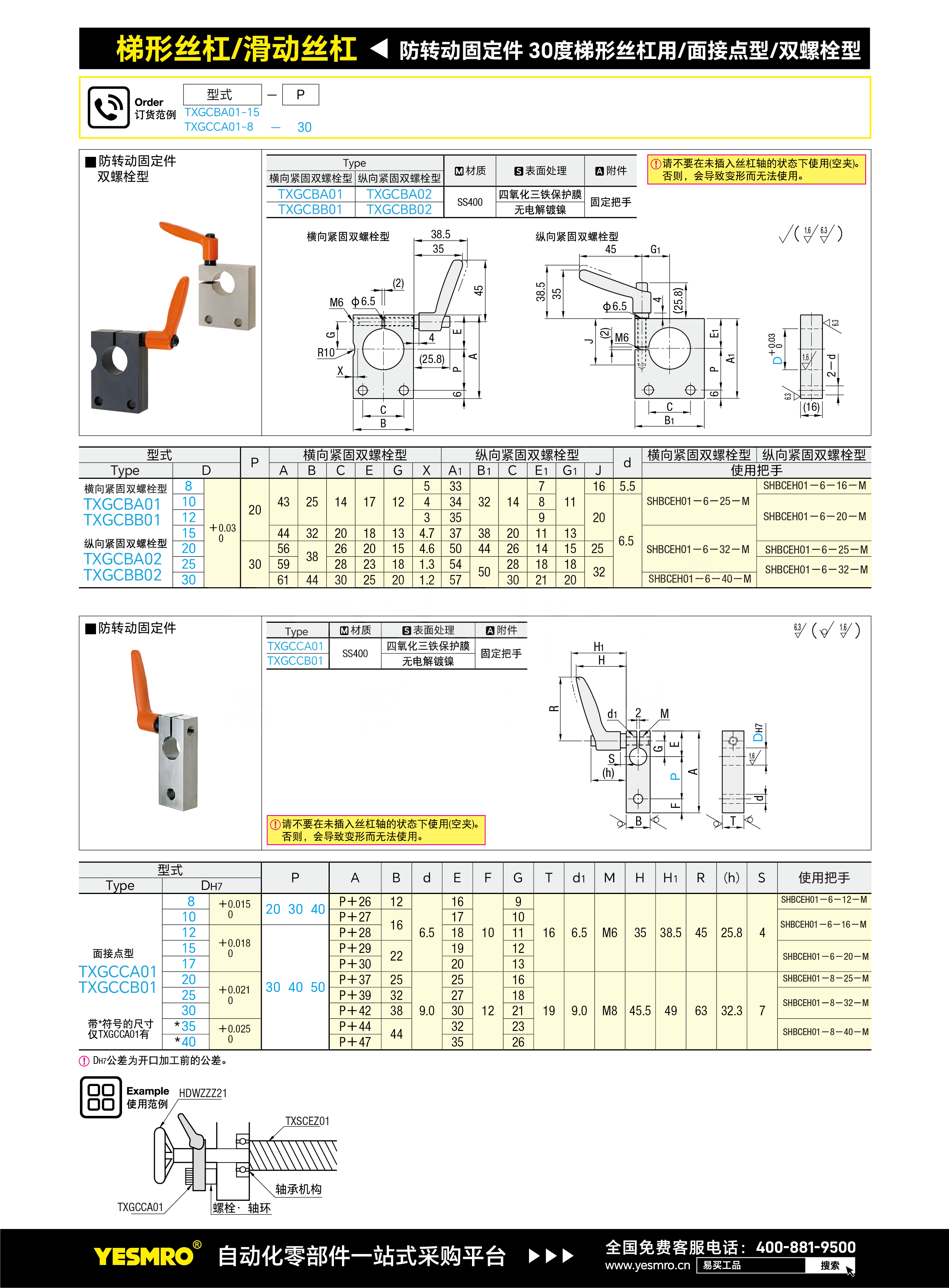 防转动固定件 30度梯形丝杠用/面接点型