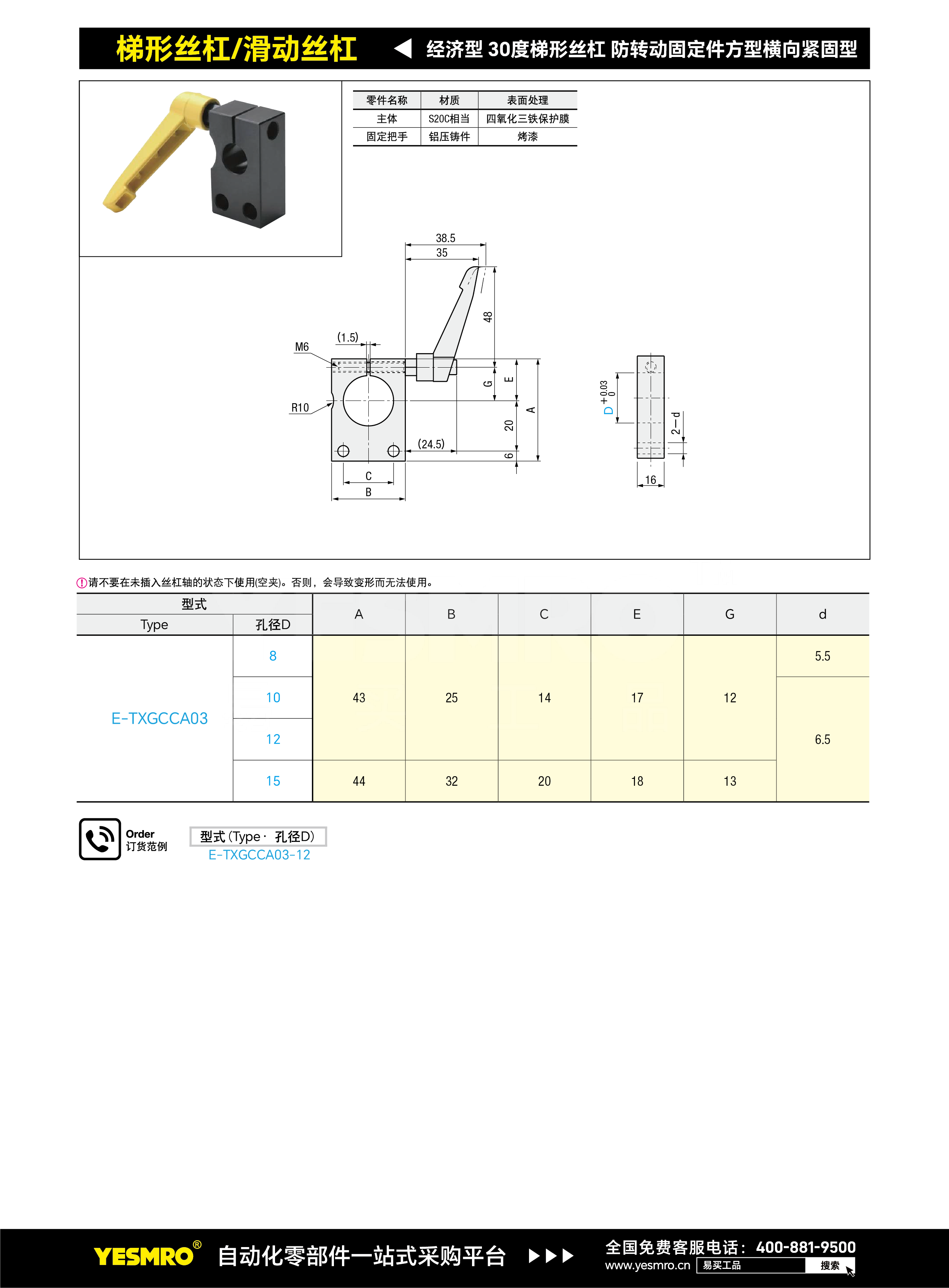 经济型 30度梯形丝杠防转动固定件 方型 横向紧固型