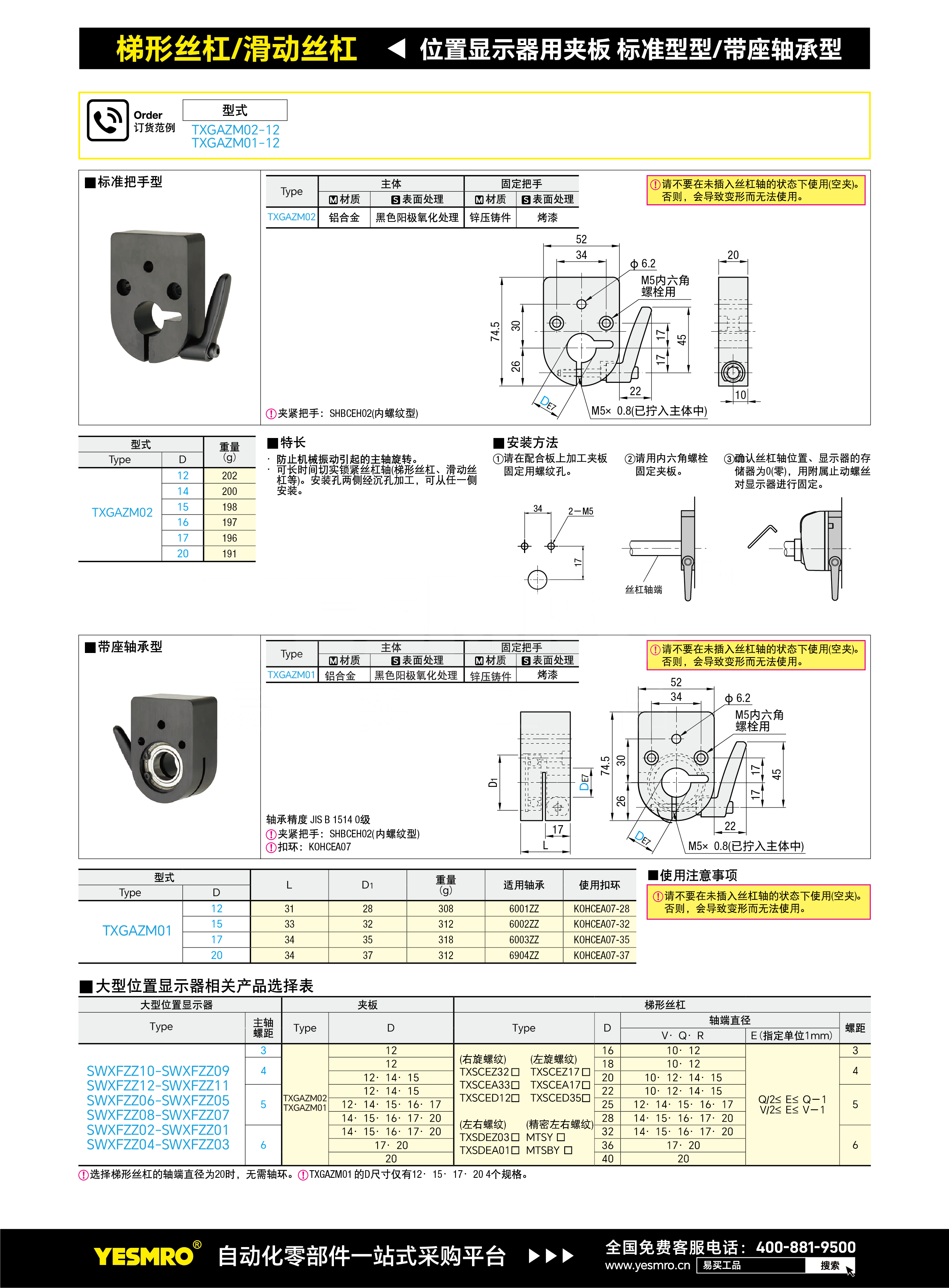 大型位置显示器用夹板带座轴承型