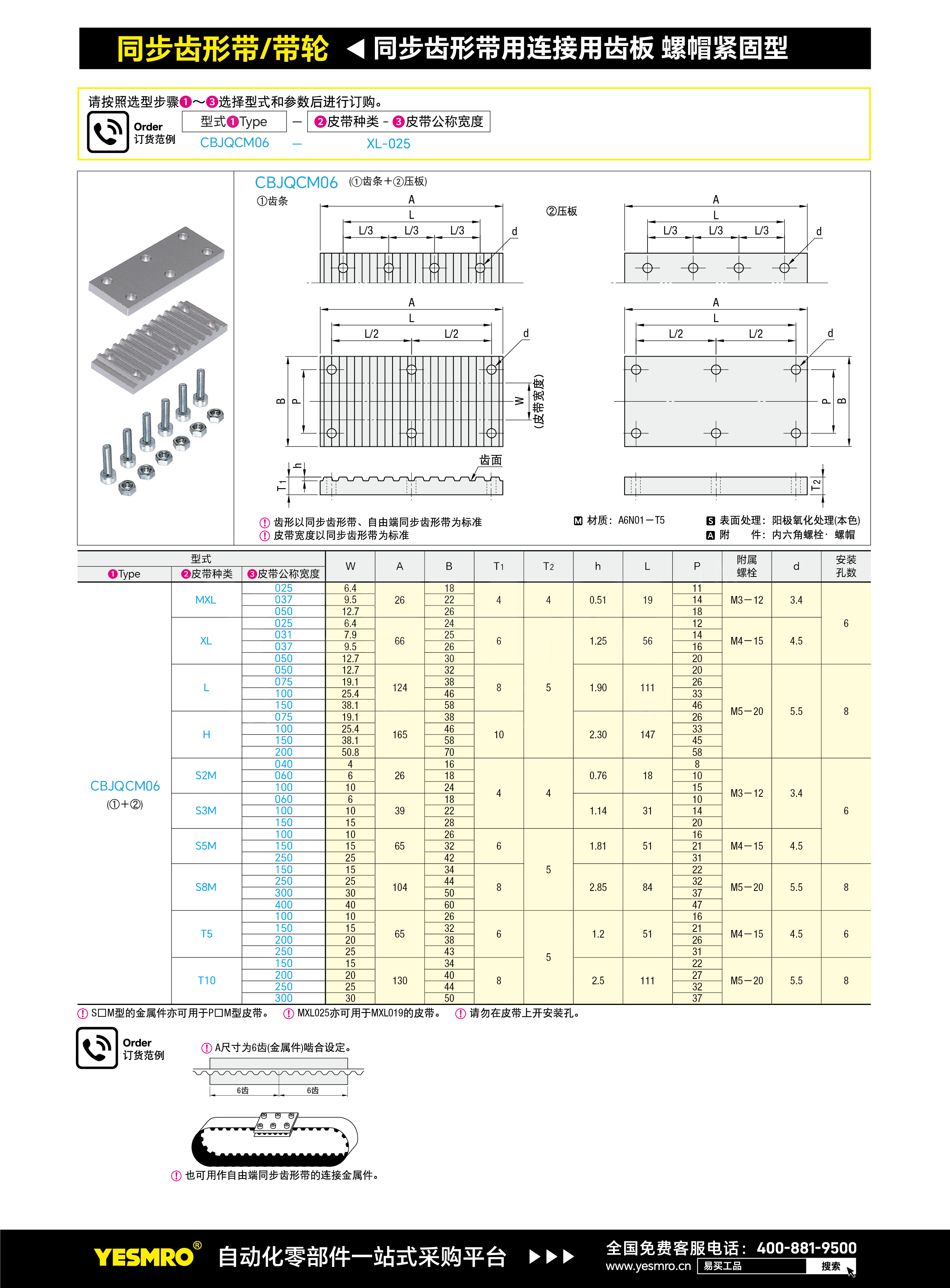 同步齿形带用连接用齿板 螺帽紧固型