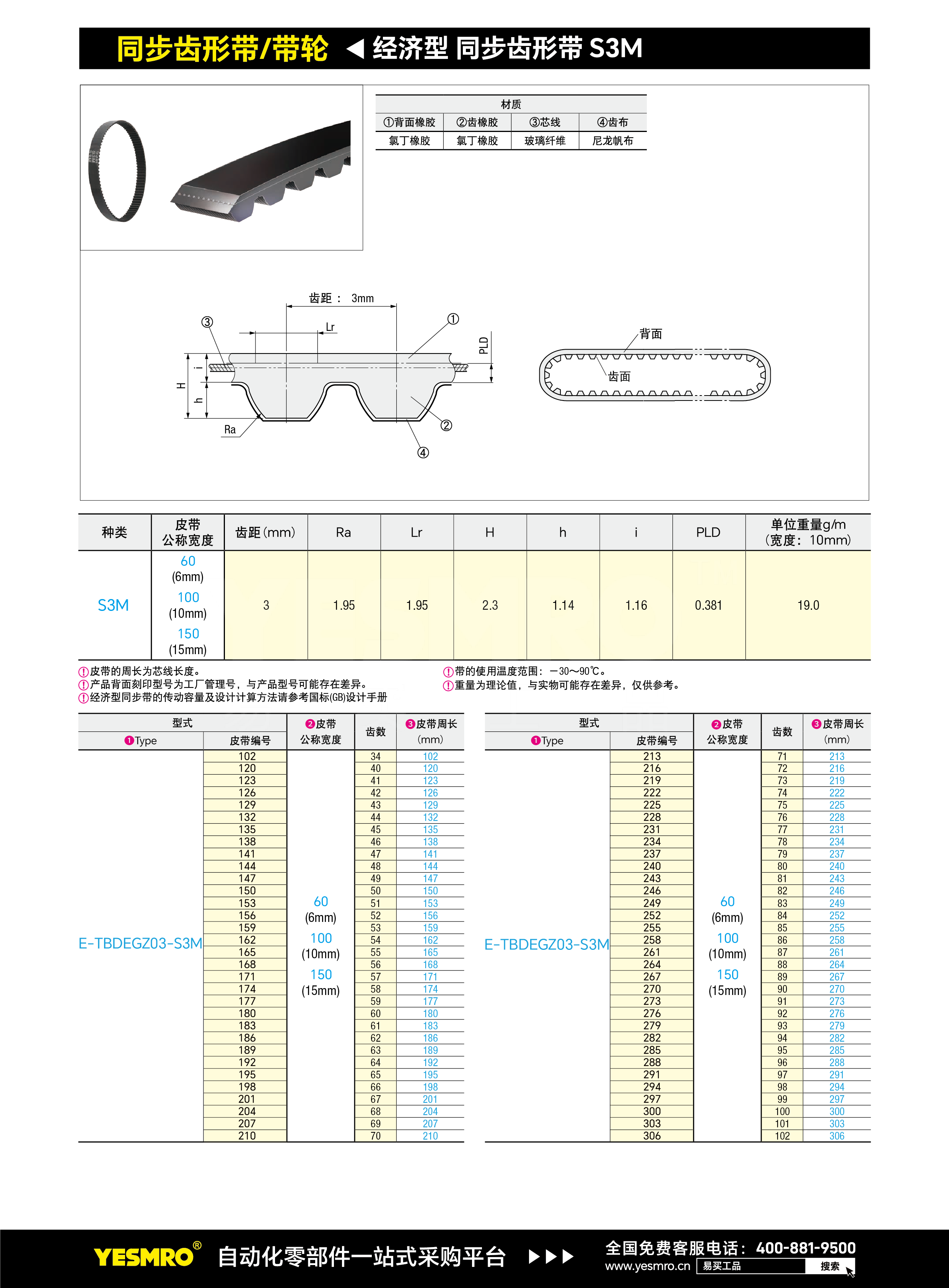 经济型 同步齿形带 S3M