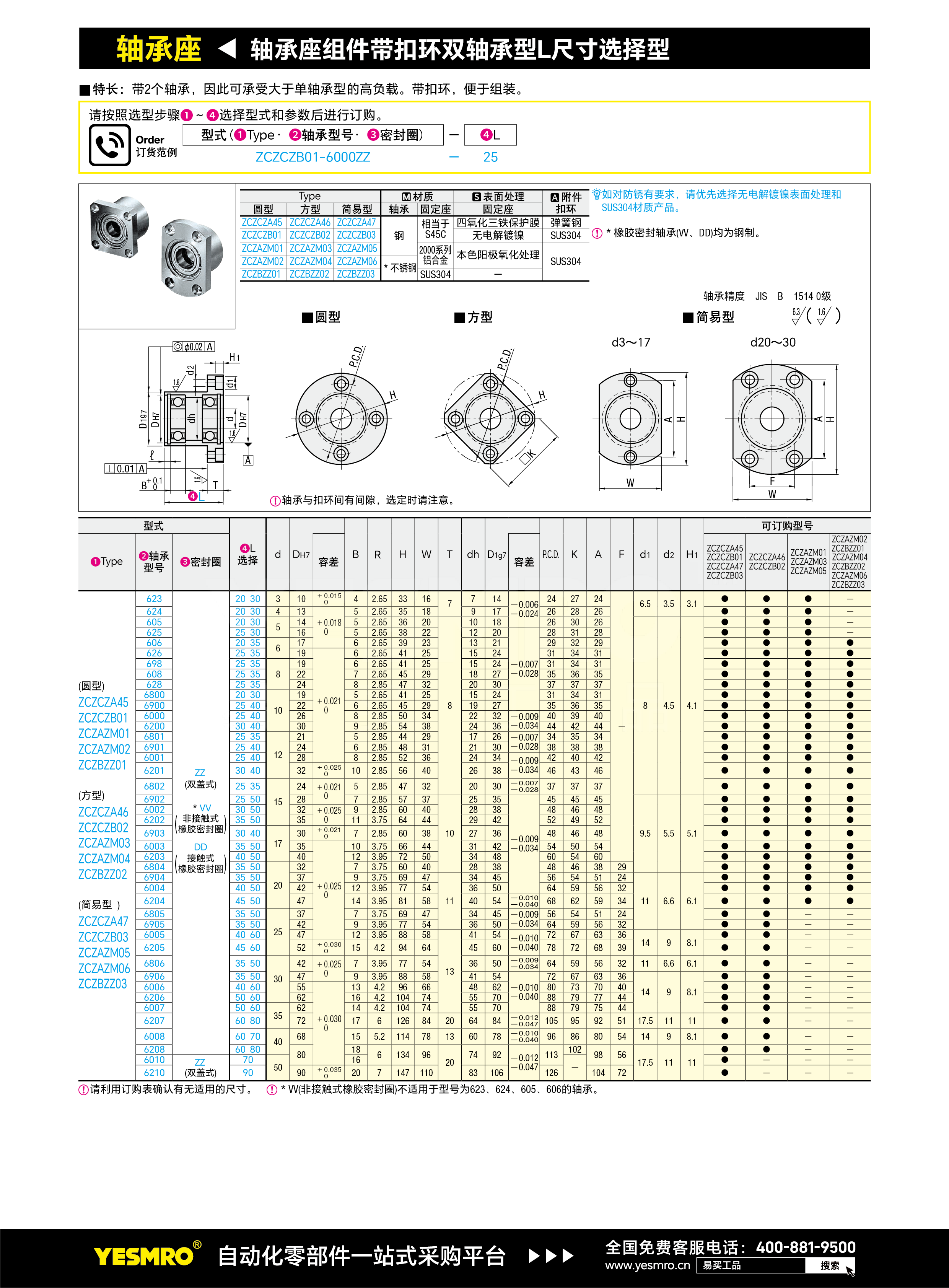 轴承座组件带扣环双轴承型L尺寸选择型