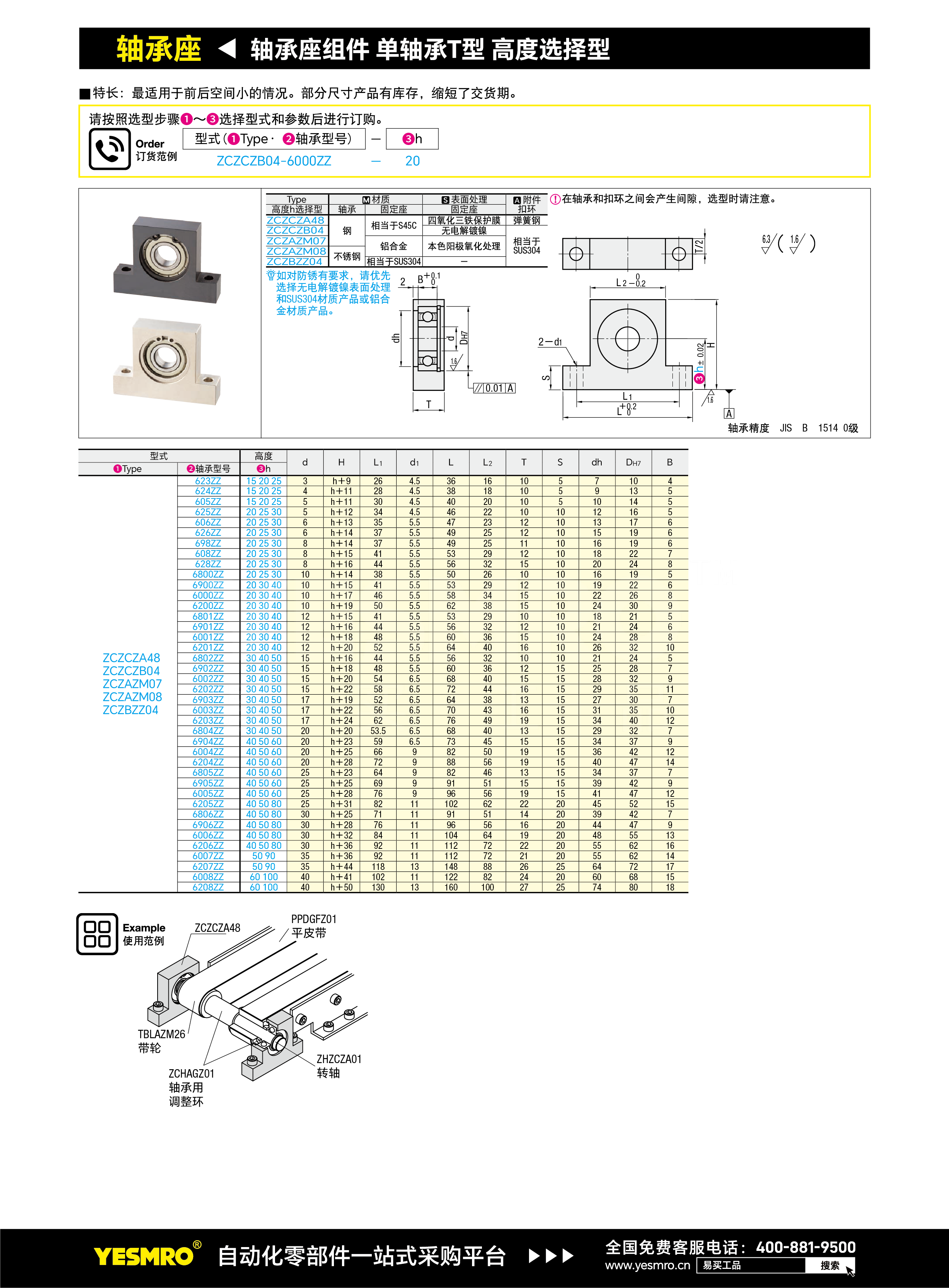 轴承座组件单轴承T型 高度选择型