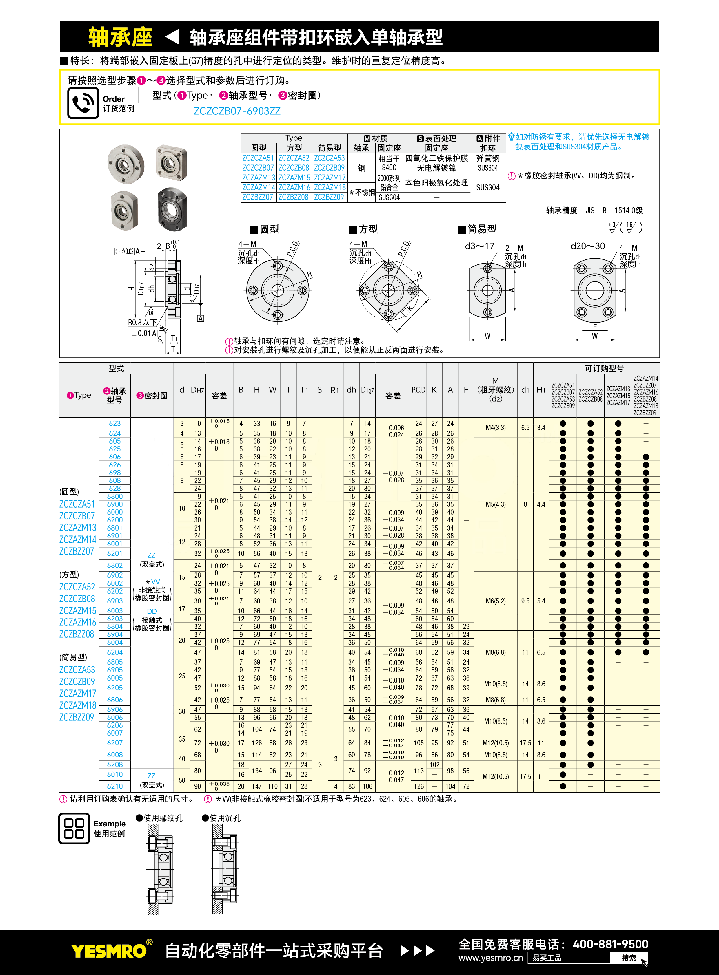 轴承座组件带扣环嵌入单轴承型
