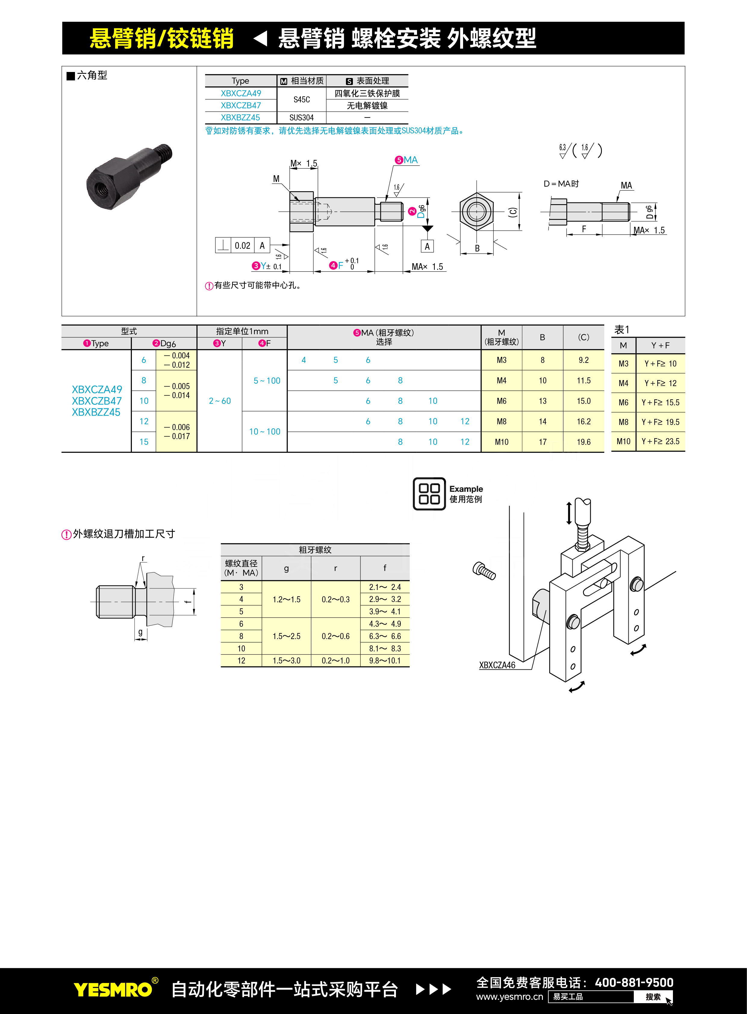 悬臂销 螺栓安装 外螺纹型 台阶型