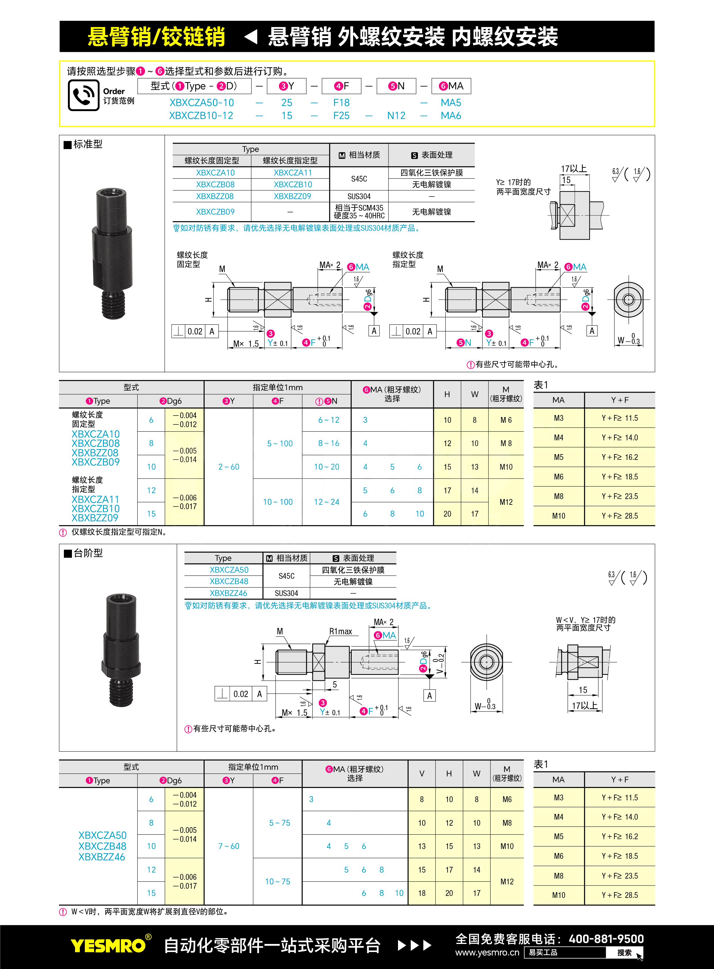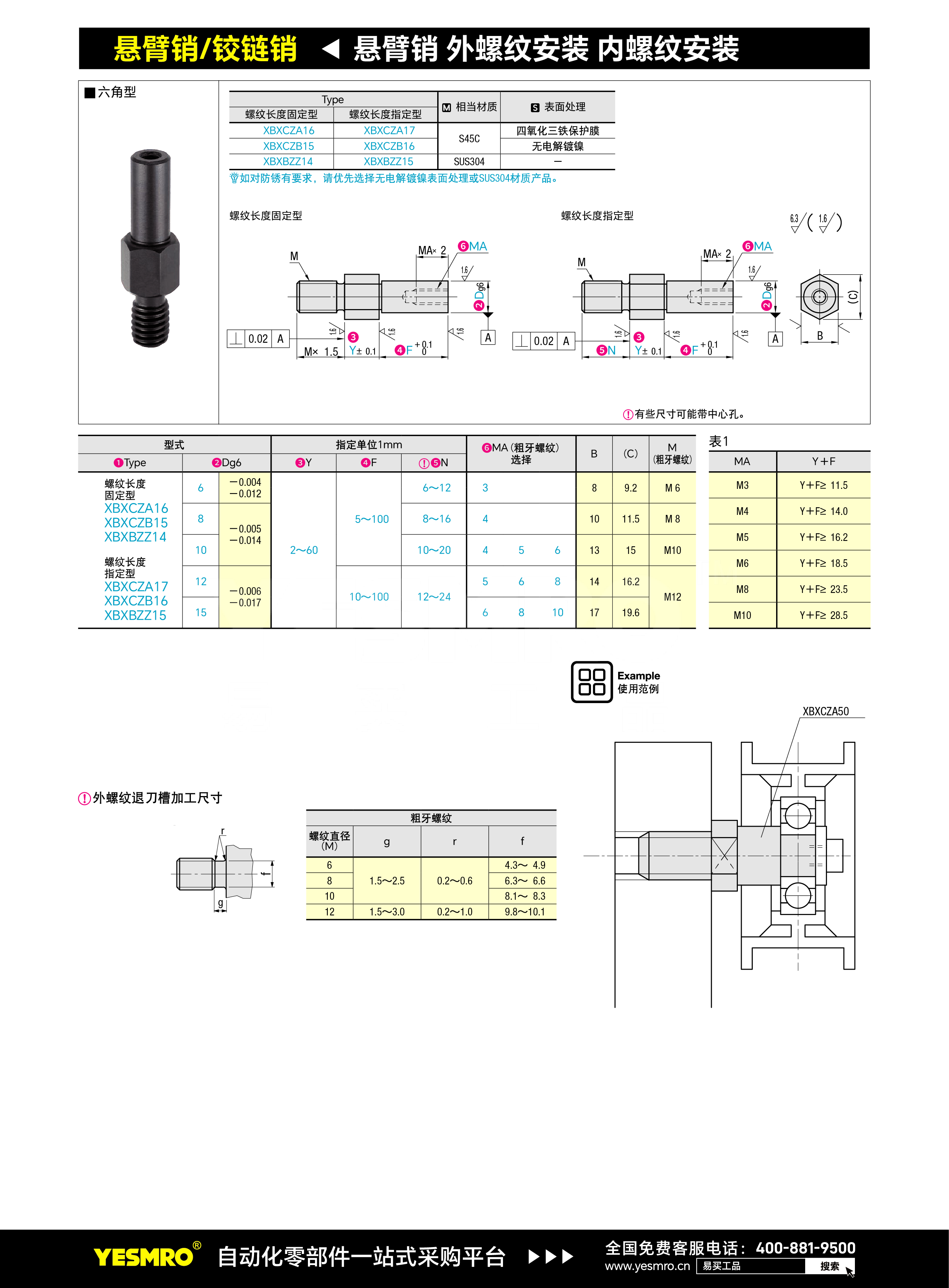 悬臂销 外螺纹安装 内螺纹型 台阶型