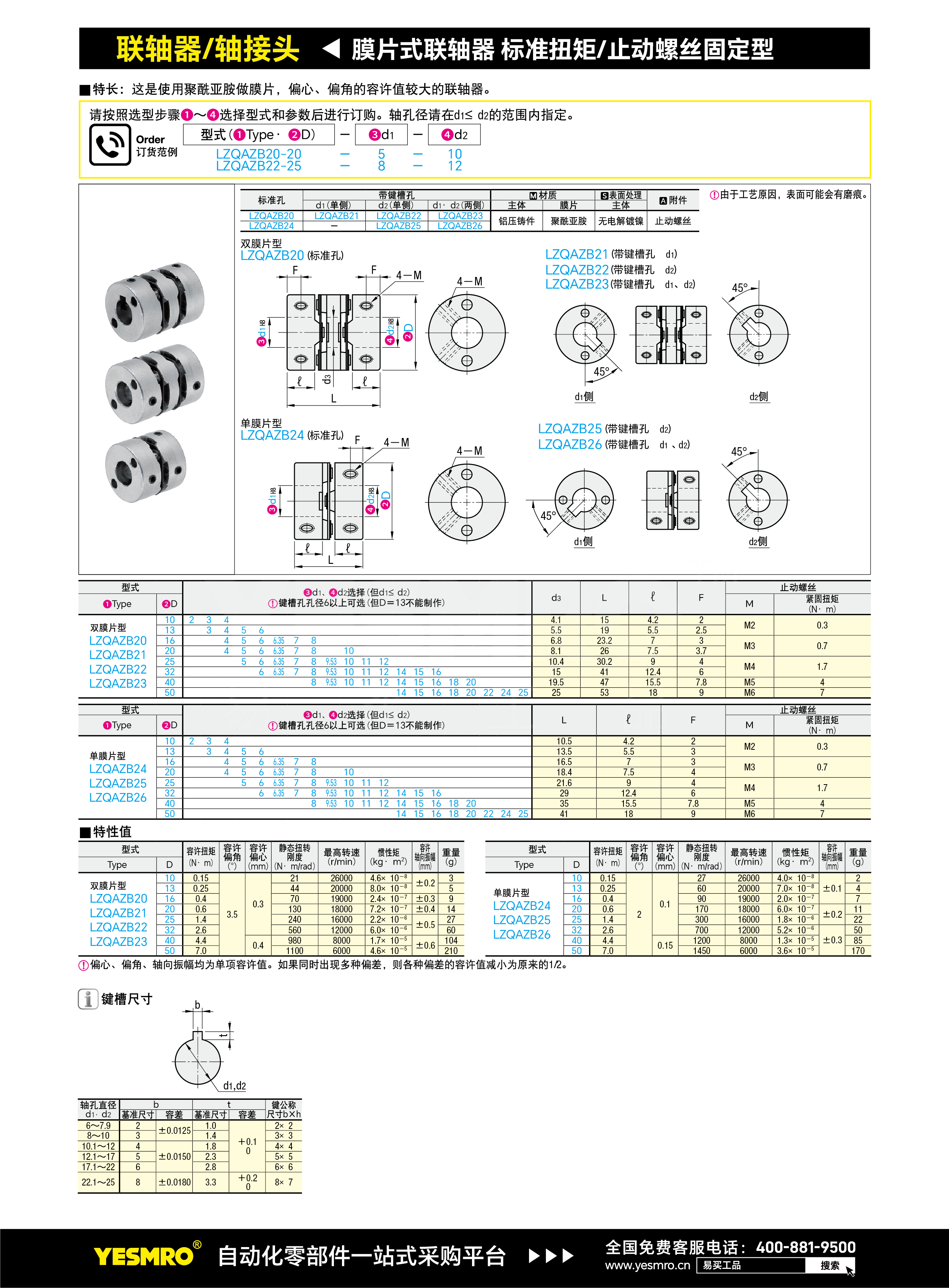 膜片式联轴器 标准扭矩/止动螺丝固定型