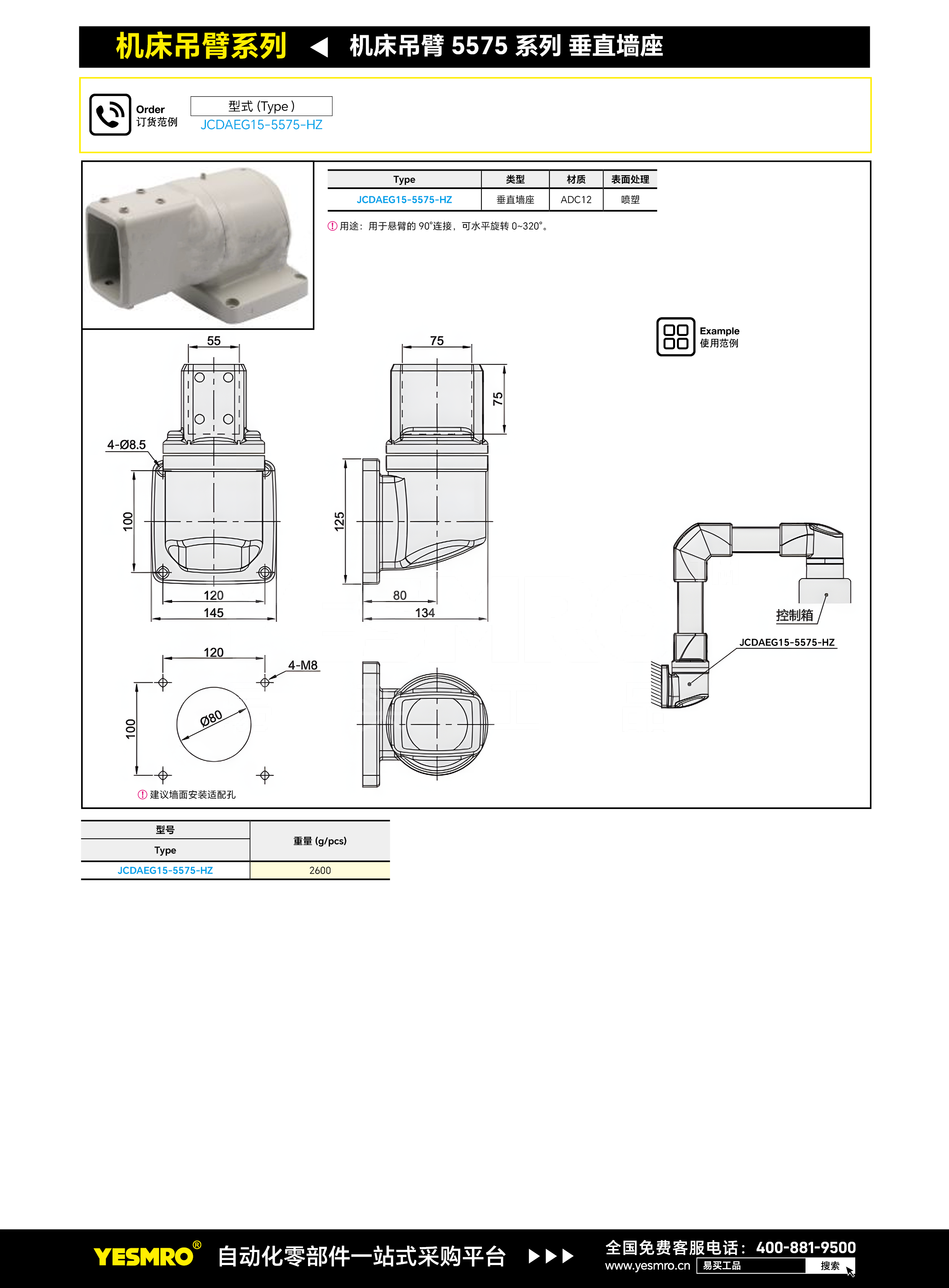 机床吊臂 垂直墙座