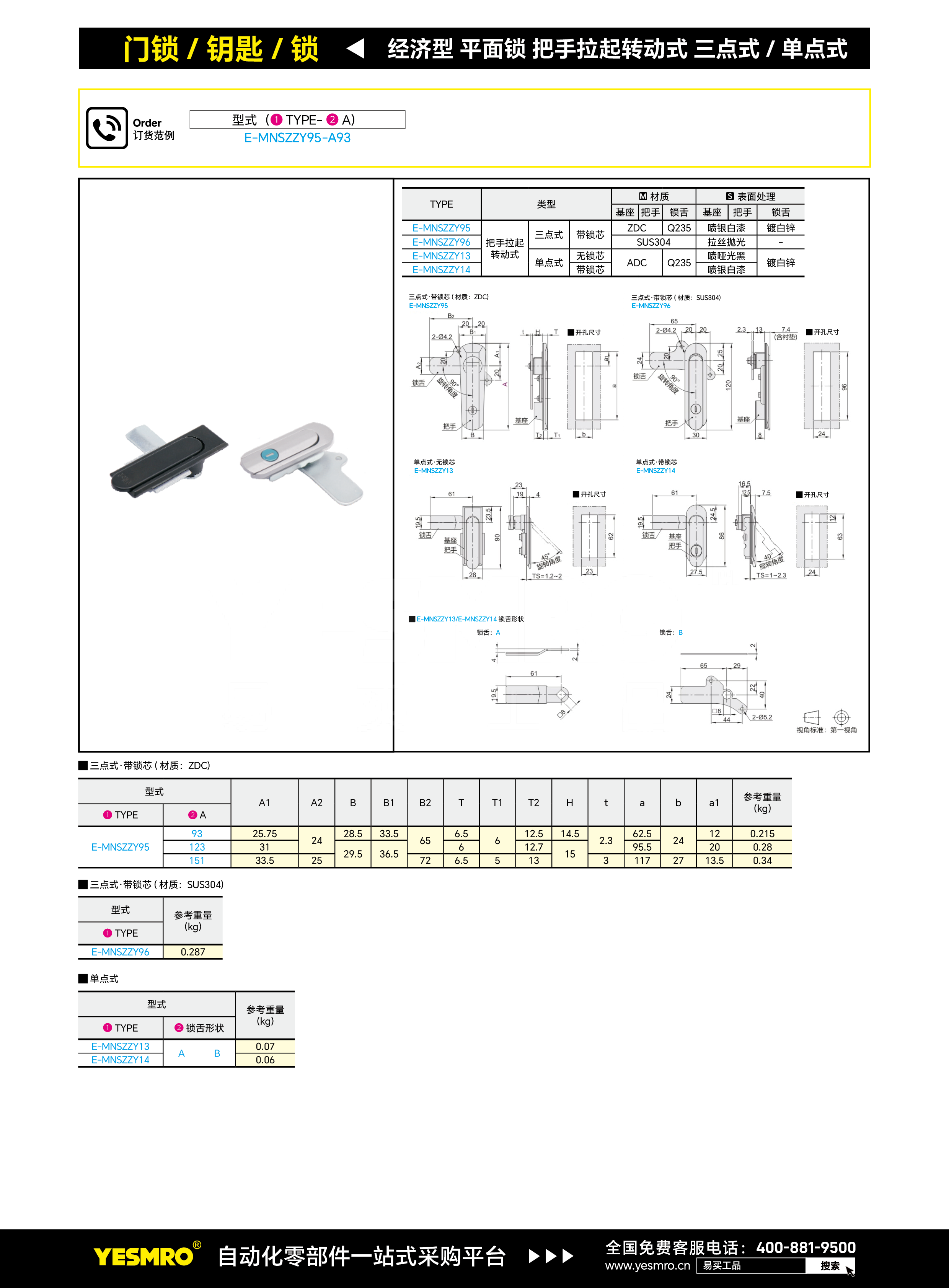 经济型平面锁 把手拉起转动式 三点式/单点式