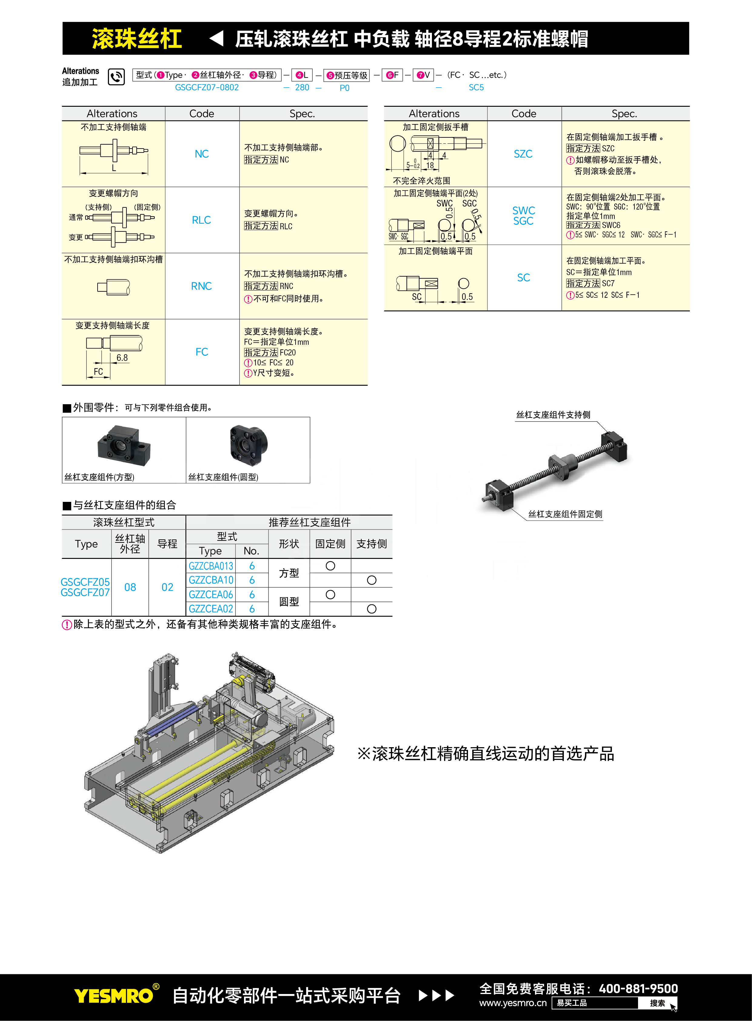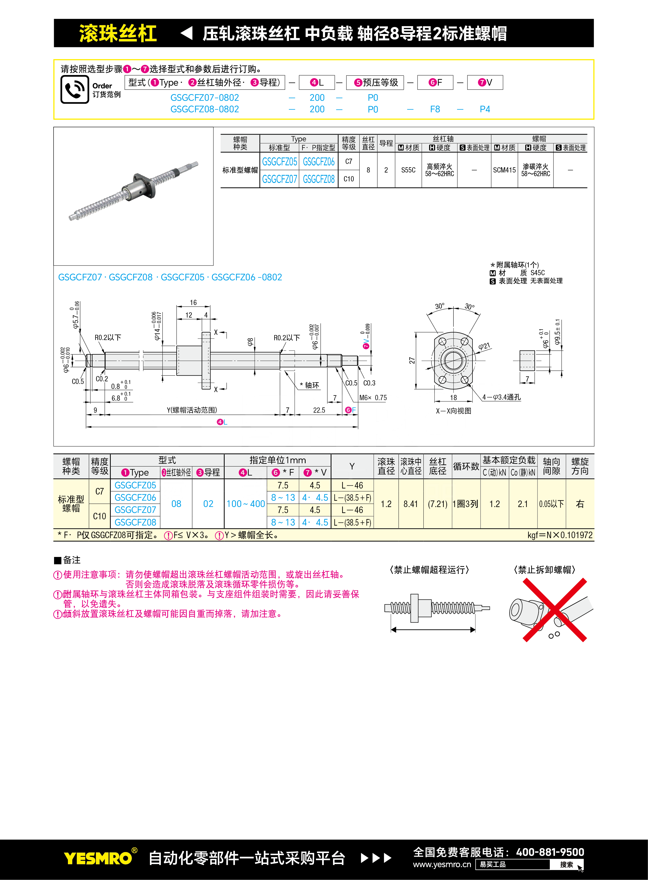 压轧滚珠丝杠 中负载 轴径8 导程2 标准螺帽 F、V指定型