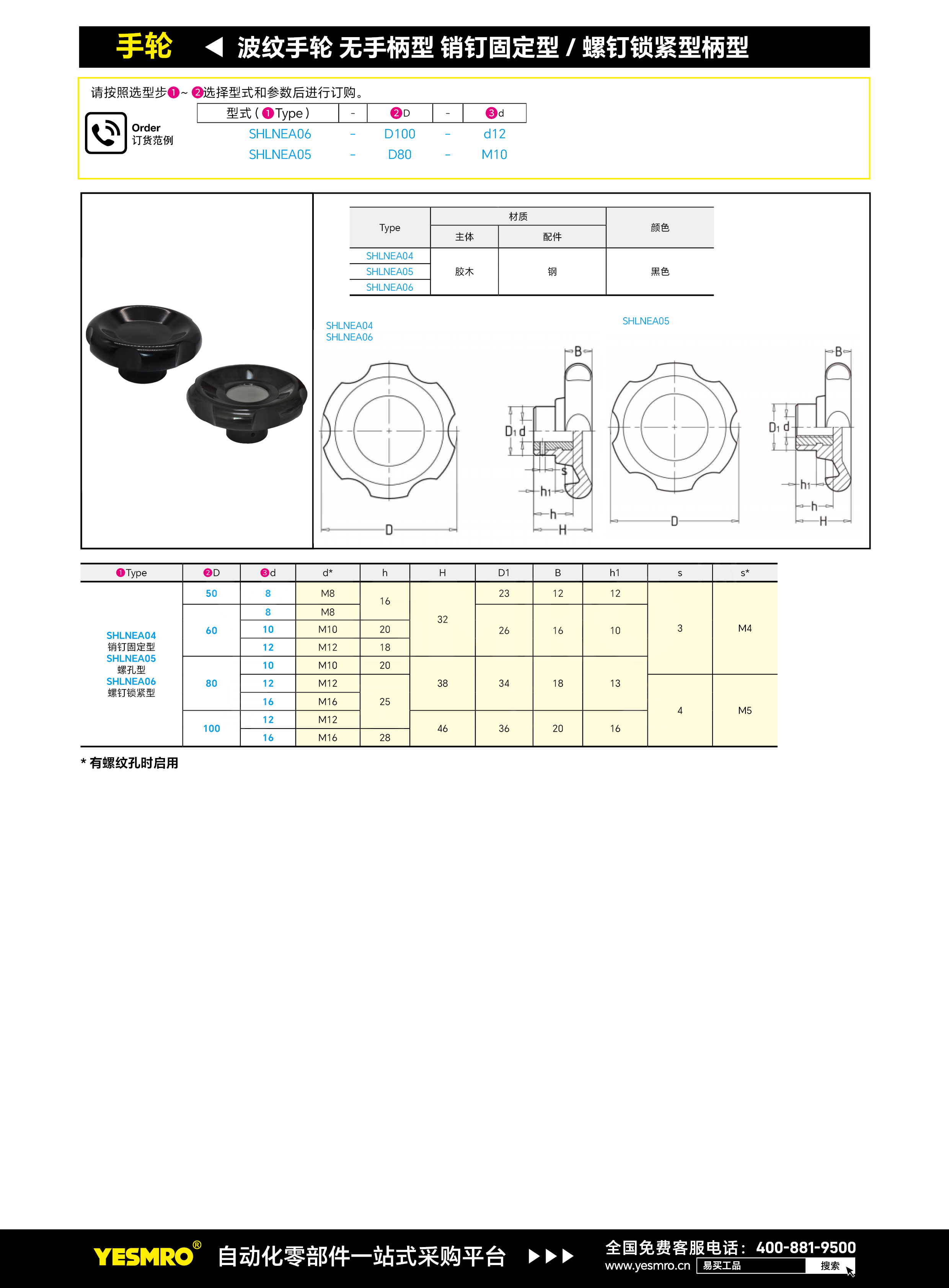 波纹手轮 无手柄型 销钉固定型/螺钉锁紧型