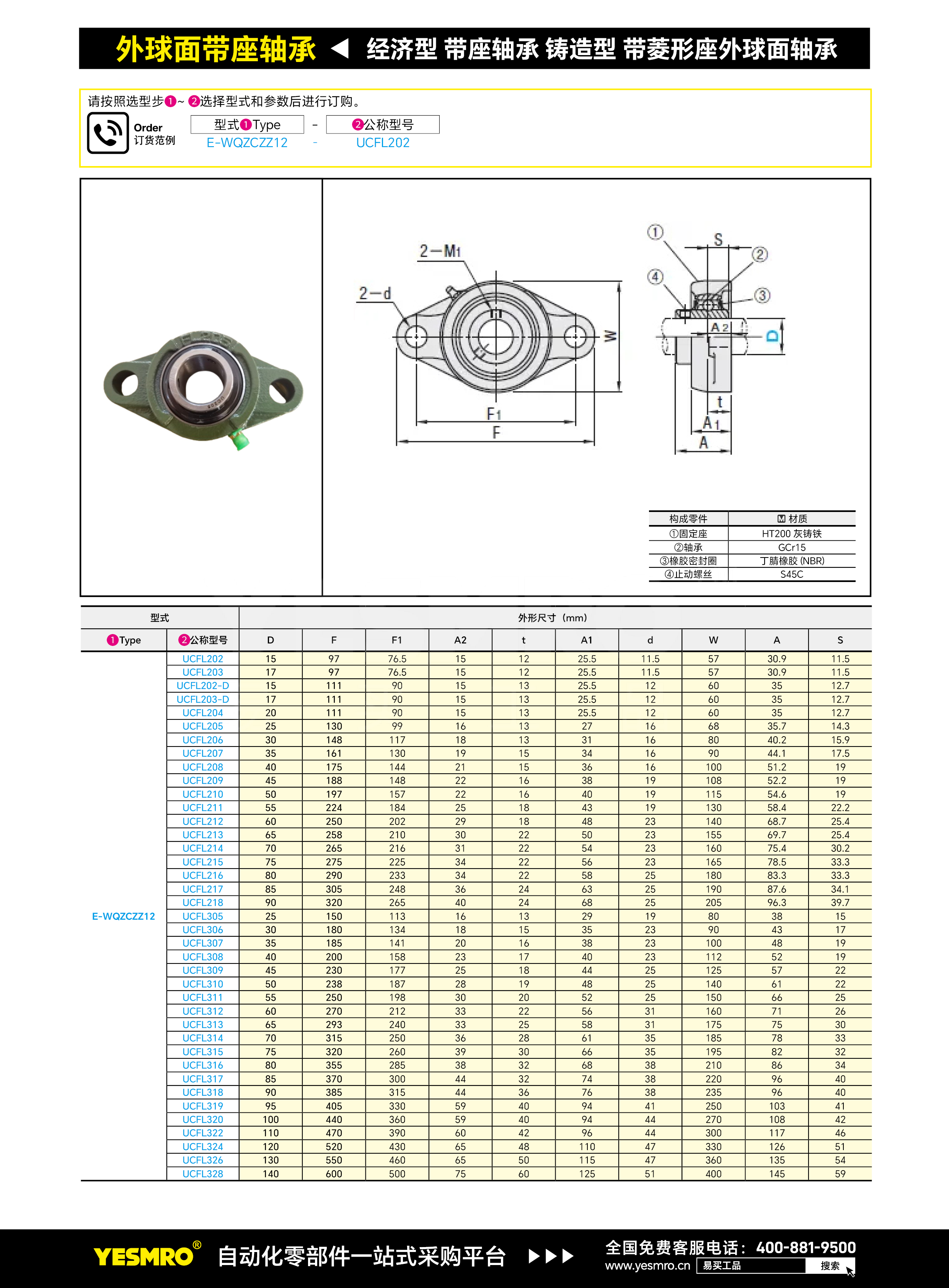 经济型 带座轴承 铸造型 带菱形座外球面轴承