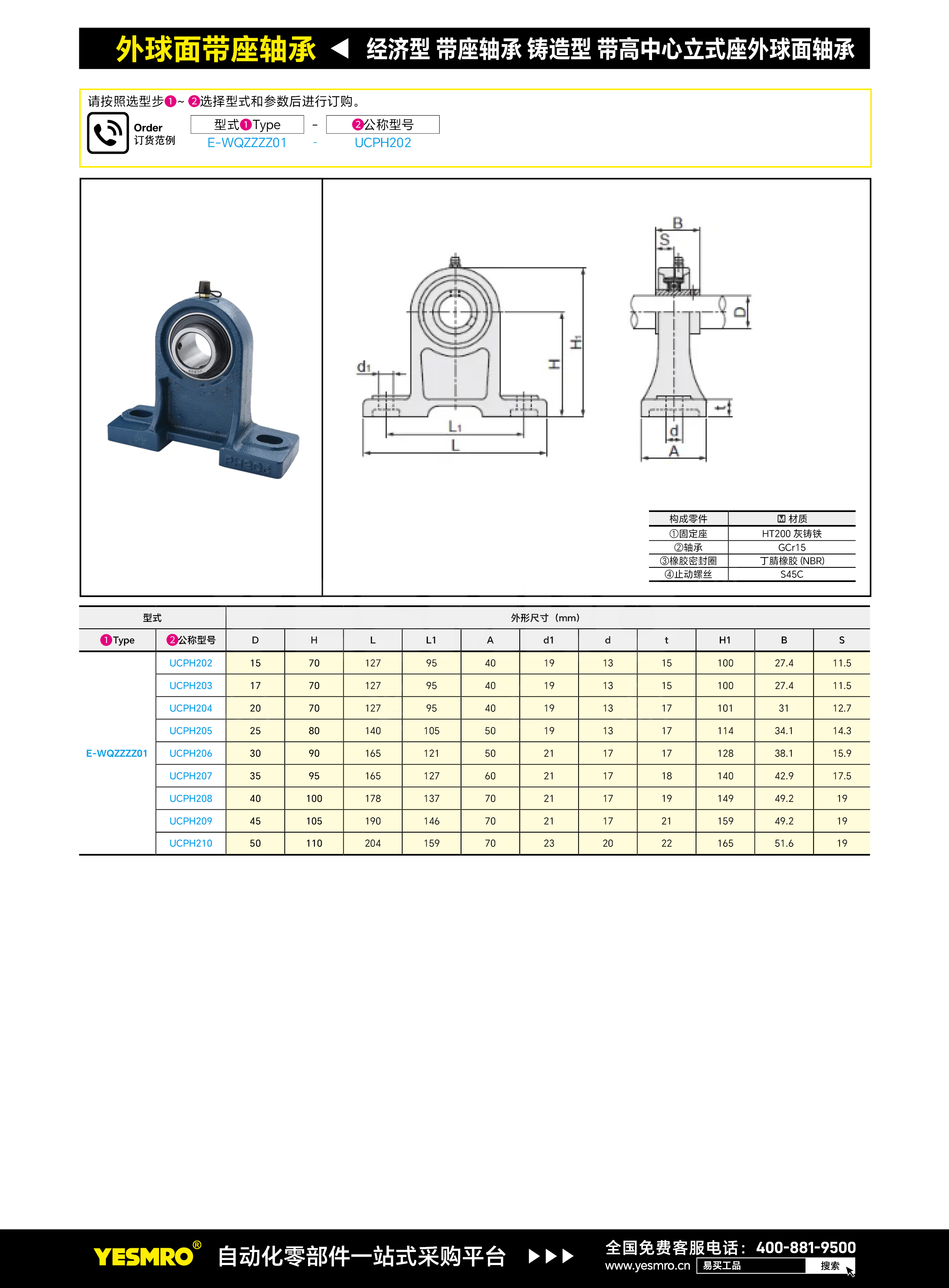 经济型 带座轴承 铸造型 带高中心立式座外球面轴承