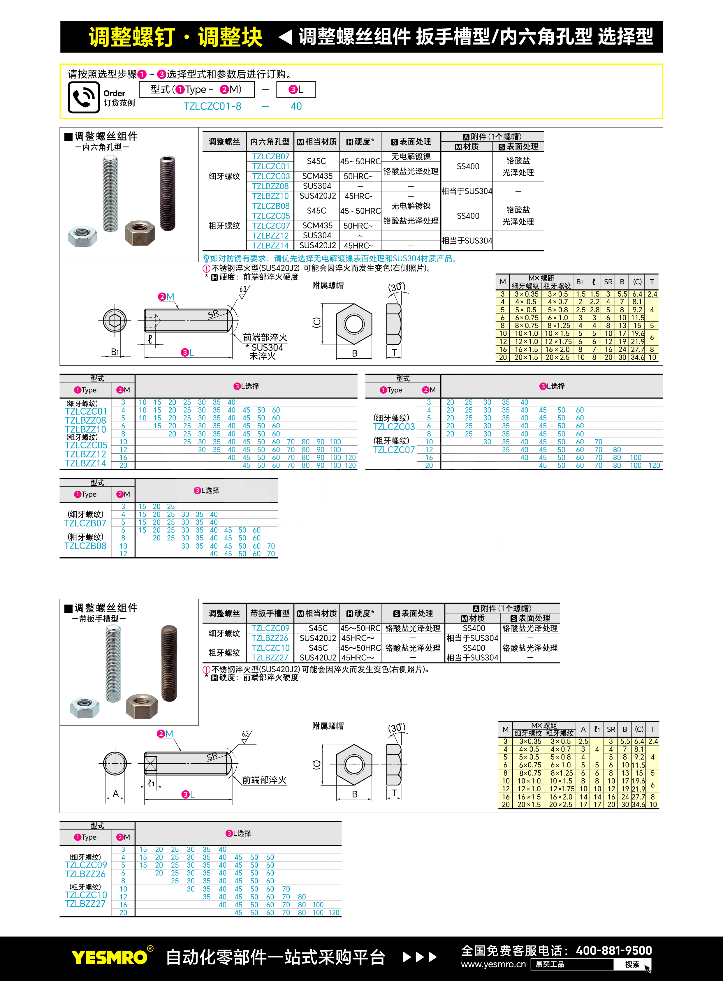 调整螺丝组件 内六角孔型 选择型