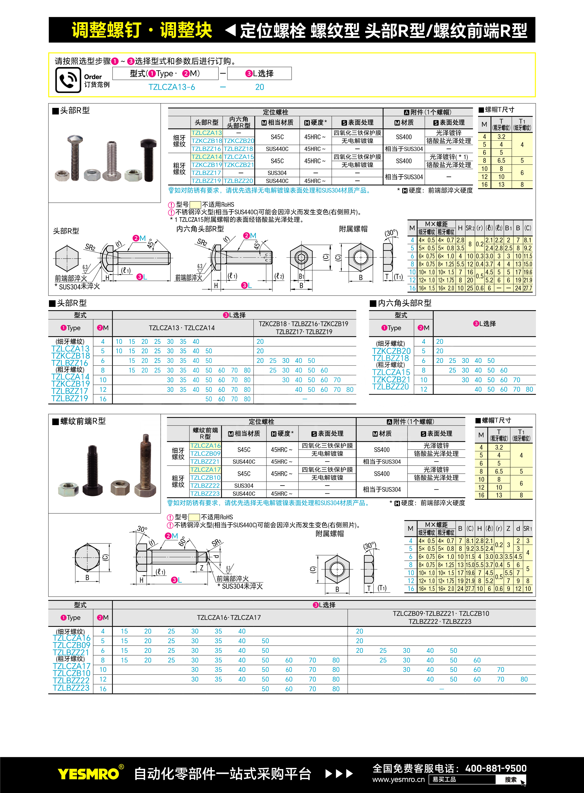 定位螺栓 螺纹型 头部R型